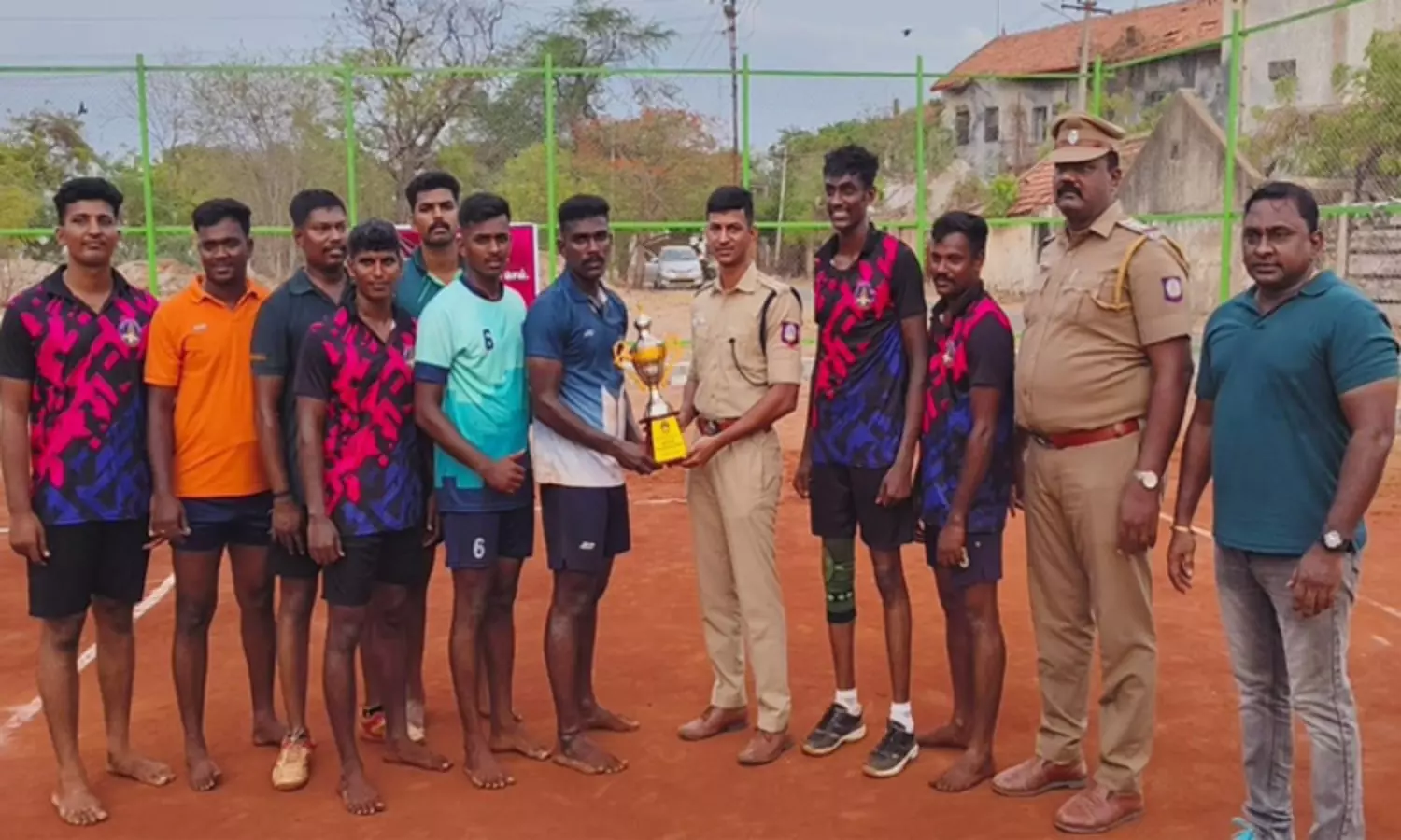 காவலர் தினம்: வாலிபால் போட்டியில் வெற்றி பெற்ற அணிக்கு கேடயம்- ஏ.எஸ்.பி. வழங்கினார்