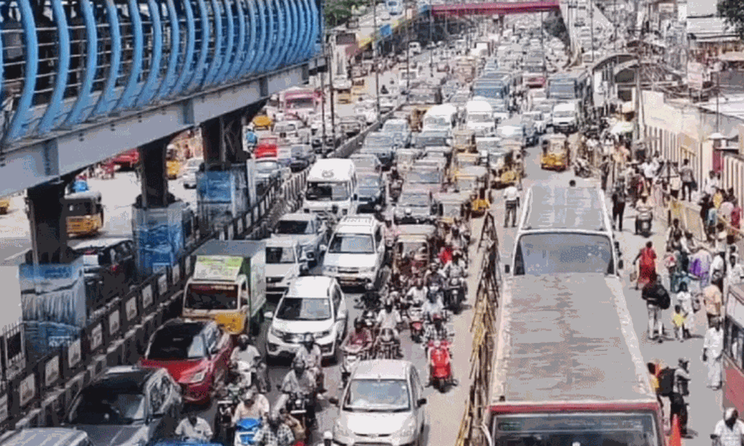 பொங்கல் பண்டிகையை கொண்டாட சொந்த ஊர் சென்ற மக்கள், மீண்டும் சென்னைக்கு திரும்ப தொடங்கி உள்ளனர். இதனால் சென்னையில் பல இடங்களில் போக்குவரத்து நெரிசல் ஏற்பட்டது. குறிப்பாக பெருங்களத்தூர் ஜிஎஸ்டி சாலையில் கடும் போக்குவரத்து நெரிசல் ஏற்பட்டது. தாம்பரம், வண்டலூர் பகுதிகளில் நத்தை போல வாகனங்கள் ஊர்ந்து சென்றன. போக்குவரத்து நெரிசலில் ஆம்புலன்ஸ் வாகனங்களும் சிக்கித் தவித்தன.