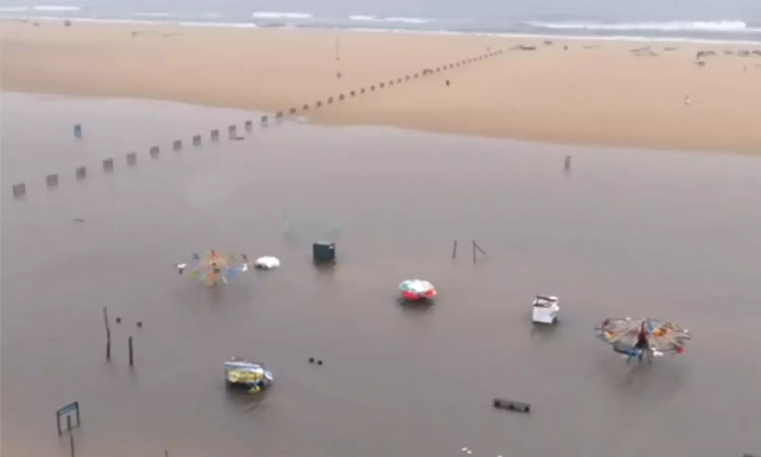 இந்த நிலையில், கனமழை காரணமாக மெரினா கடற்கரை மணல் பகுதிகளில் மழைநீர் குளம் போல தேங்கியுள்ளது. இதனால் கடற்கரையின் சில பகுதிகள் கடல் போல காட்சியளிக்கின்றன. எனவே பாதுகாப்பு காரணங்களுக்காக பொதுமக்கள் மெரினா கடற்கரைக்கு செல்ல தடை விதிக்கப்பட்டு உள்ளது. மேலும், மெரினா கடற்கரைக்கு செல்லும் வழியில் தடுப்புகள் அமைக்கப்பட்டுள்ளது.
