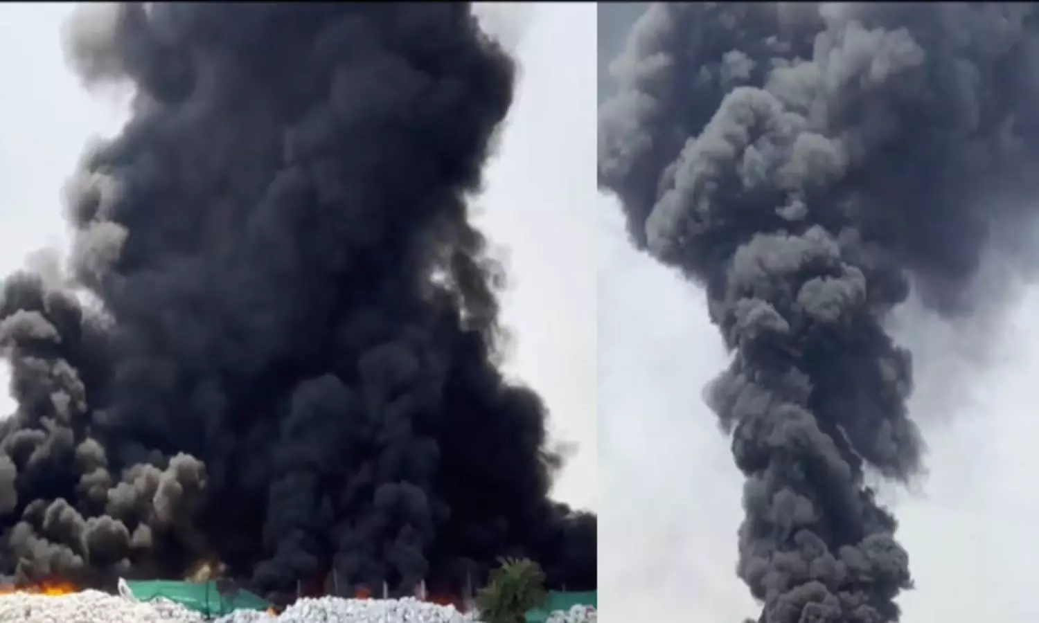 ராணிப்பேட்டை: பற்றி எரிந்த பிளாஸ்டிக் குடோன்... வானுயர எழுந்த கரும்புகை