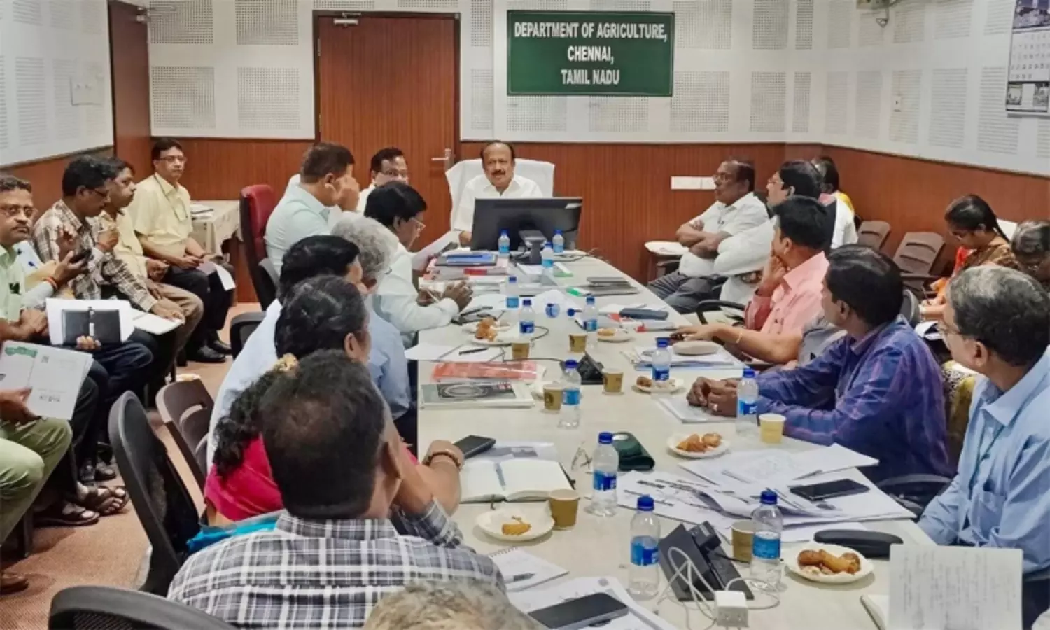 வேளாண் திட்டப் பணிகள் குறித்து அமைச்சர் எம்.ஆர்.கே.பன்னீர்செல்வம் தலைமையில் ஆய்வுக் கூட்டம்