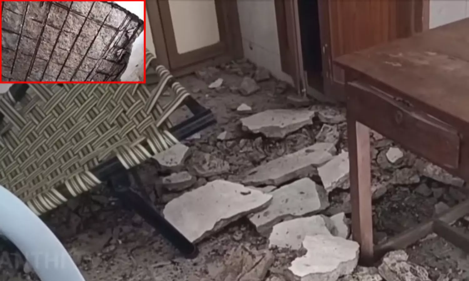 மேற்கூரை இடிந்து விழுந்த சம்பவத்தால் அப்பகுதியில் சிறிது பரபரப்பான சூழல் நிலவியது. இதனை தொடர்ந்து வருவாய் துறையினருக்கு தகவல் தெரிவிக்கப்பட்டது. தகவலறிந்த வருவாய் துறையினர் சம்பவ இடத்தில் ஆய்வு மேற்கொண்டு வருகின்றனர்.