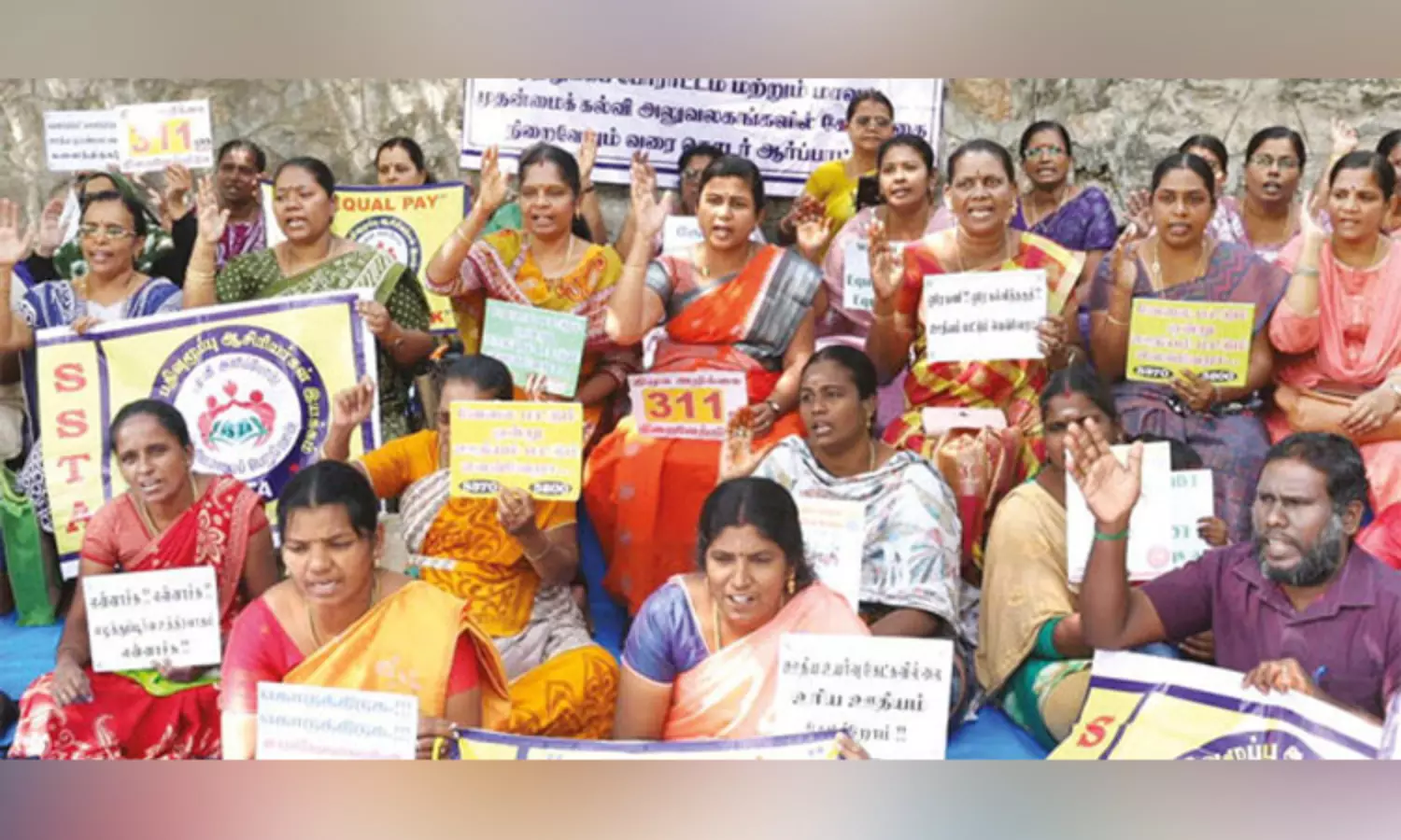 சம வேலைக்கு, சம ஊதியம் வழங்க கோரி இடைநிலை ஆசிரியர்கள் ஆர்ப்பாட்டம்