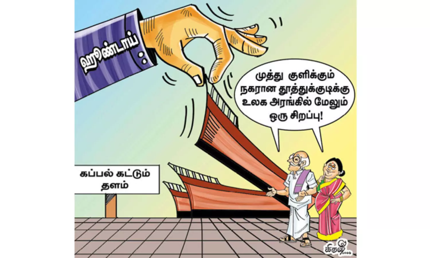 1968-ம் ஆண்டு வெளிவந்த திரைப்படத்தில் உள்ள ஒரு பாடலில், ‘தென்கோடி தூத்துக்குடி திருத்தும் துறைமுகத்தால் பொன்கோடி குவிக்கும் எங்கள் தாயகமே செல்வ பூந்தோட்டம் ஆகும் எங்கள் தமிழகமே’ என்று மறைந்த கவிஞர் கண்ணதாசன் எழுதிய கவிதை வரிகள் இன்று நனவாகி வருகிறது. சமீபத்தில் மதுரையில் தமிழ்நாடு வளர்கிறது என்ற தலைப்பில் நடந்த முதலீட்டாளர்கள் மாநாட்டில் முதல்-அமைச்சர் மு.க.ஸ்டாலின், “சிறிய அளவிலான சிப் (மின்னணு சாதனங்களின் இயக்கத்துக்கு தேவையான முக்கிய பொருள்) முதல் ‘ஷிப்’ (கப்பல்) வரை அனைத்து துறைகளிலும் தமிழ்நாடு தன்னிறைவு பெற்று தலை நிமிர்ந்து நிற்கிறது” என்று மிகவும் பெருமிதத்தோடு பேசினார். மேலும், “ஹூண்டாய் நிறுவனம் தமிழ்நாட்டின் வாகனத்துறையில் எத்தகைய வளர்ச்சியை ஏற்படுத்தியதோ, அதுபோல இந்த நிறுவனத்தின் கப்பல் கட்டுமான நிறுவனமும் உறுதியான வளர்ச்சியை ஏற்படுத்தும்” என்று கூறினார்.