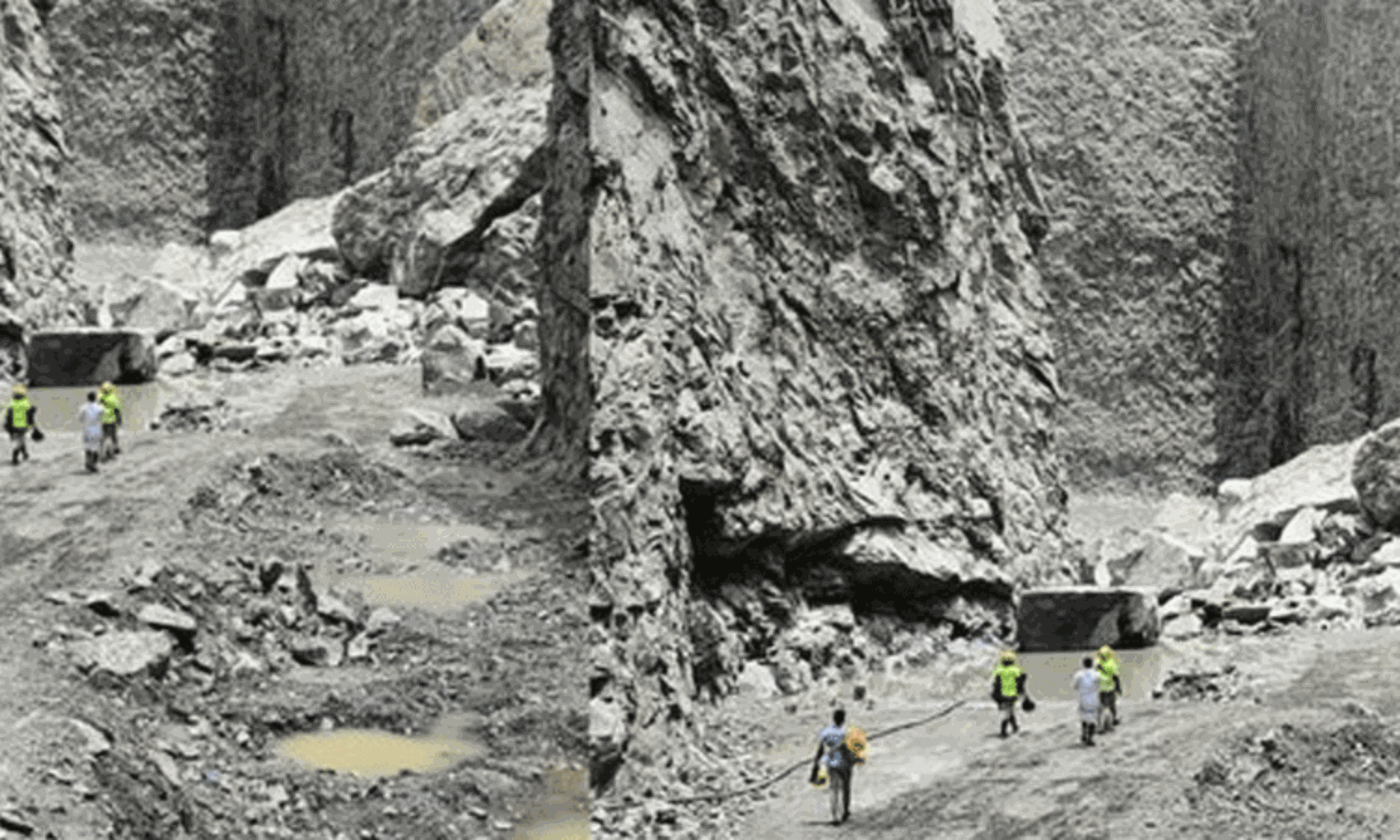 எதிர்பாராதவிதமாக மணல் மற்றும் கற்கள் சரிந்து தொழிலாளர்கள் மேல் விழுந்தது.;