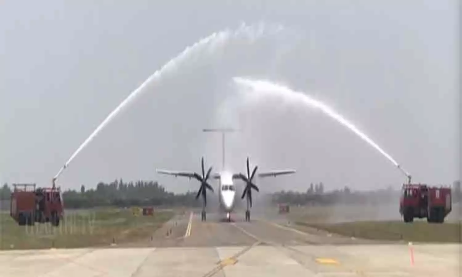 அதன்படி சென்னையில் இருந்து தூத்துக்குடி விமான நிலையத்திற்கு வந்த ஸ்பைஸ்ஜெட் விமானத்தை தண்ணீர் பீய்ச்சி அடித்து விமான நிலைய நிர்வாகத்தினர் உற்சாகமாக வரவேற்றனர்.