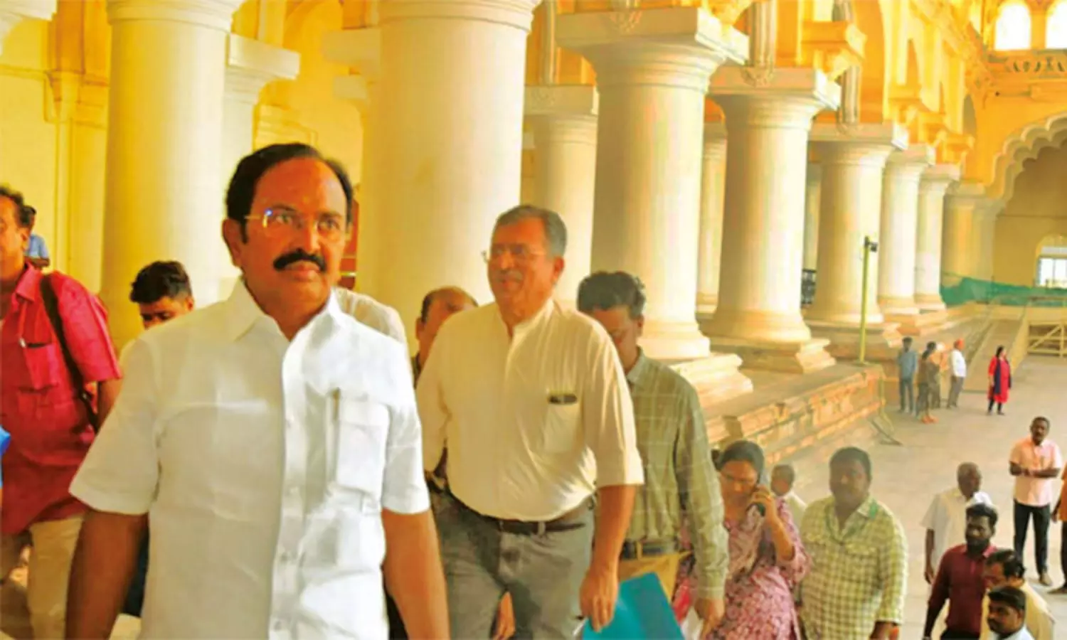 தொடர்ந்து மன்னர் திருமலை நாயக்கர் மகாலில் நடைபெற்று வரும் புனரமைப்பு பணிகளை அமைச்சர் ராஜேந்திரன் நேரில் பார்வையிட்டு ஆய்வு செய்தார். அப்போது, திருமலை நாயக்கர் மகாலை சுற்றி பார்த்து கொண்டிருந்த வெளிநாட்டு சுற்றுலா பயணிகளிடம், எந்த நாட்டில் இருந்து வந்துள்ளீர்கள் என விசாரித்தார். தொடர்ந்து அவர்களுடன் புகைப்படமும் எடுத்துக் கொண்டார்.
