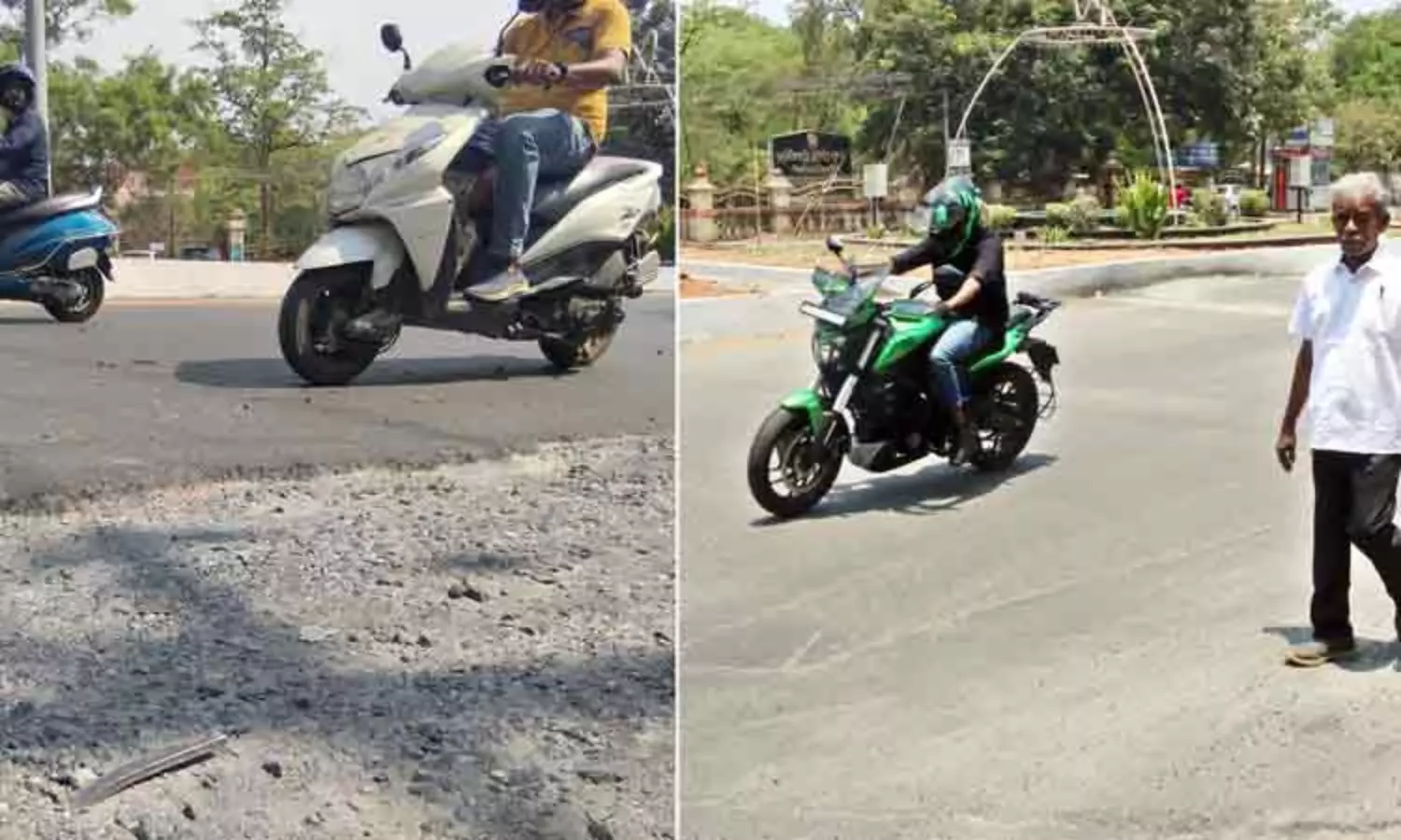 கோவை கோர்ட்டு அருகே உள்ள சாலையில் வாகன போக்குவரத்து எப்போதும் அதிகமாக இருக்கும். அந்த வழியாக கலெக்டர் அலுவலகம், கமிஷனர் அலுவலகம், ரெயில் நிலையங்களுக்கு வாகனங்கள் செல்வதால் போக்குவரத்து நெரிசல் தவிர்க்க முடியாததாக இருந்தது. இந்த பிரச்சினைக்கு தீர்வு காணும் வகையில் ரவுண்டானா அமைக்கப்பட்டது. ஆனால் அங்குள்ள முன்னாள் படை வீரர்கள் நல உதவி இயக்குனர் அலுவலகம் அருகே சாலை பெயர்ந்து, அதில் பாதிக்கப்பட்ட இரும்புக்கம்பி ஒன்று வெளியே நீட்டியபடி இருந்தது.