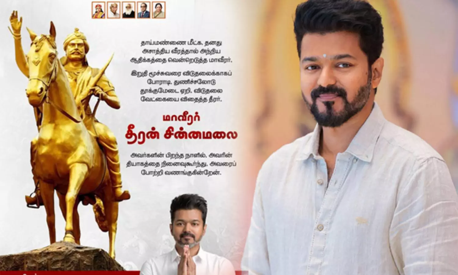 விடுதலை வேட்கையை விதைத்த தீரர் மாவீரர் தீரன் சின்னமலை - தவெக தலைவர் விஜய்