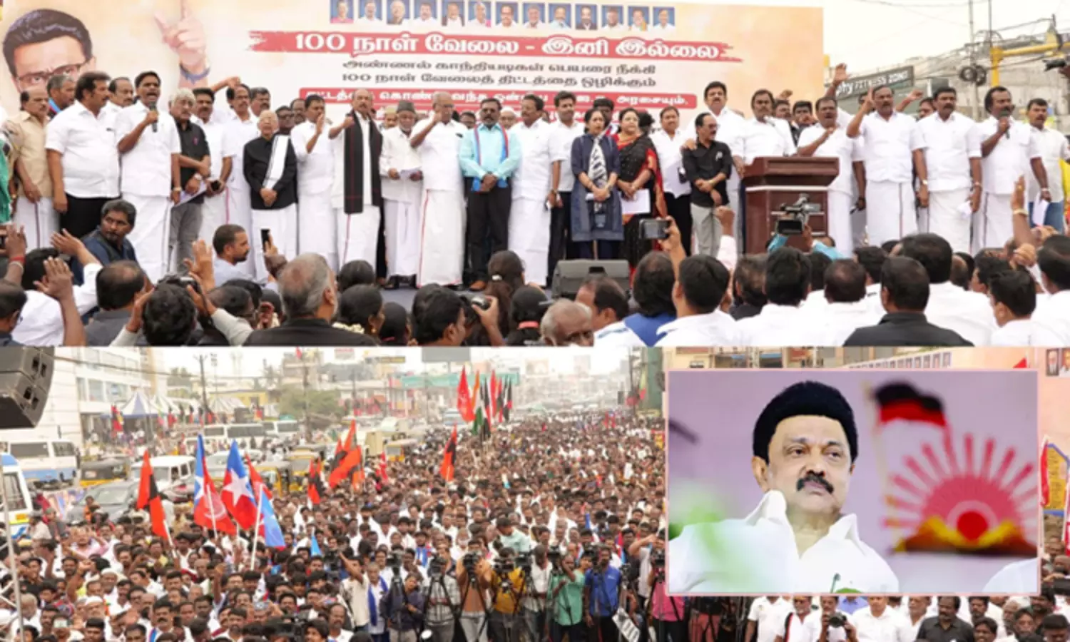தமிழ்நாடு முழுவதும் 389 இடங்களில் நடைபெற்ற ஆர்ப்பாட்டத்தில் விவசாயக் கூலித் தொழிலாளர்கள் பங்கெடுத்தனர் என மு.க.ஸ்டாலின் தெரிவித்துள்ளார்.;