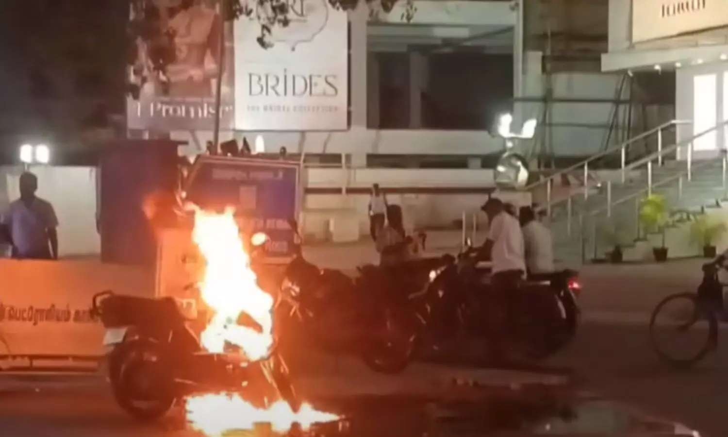 தூத்துக்குடி: பெட்ரோல் போட்ட அடுத்த நொடி மளமளவென பற்றி எரிந்த பைக்