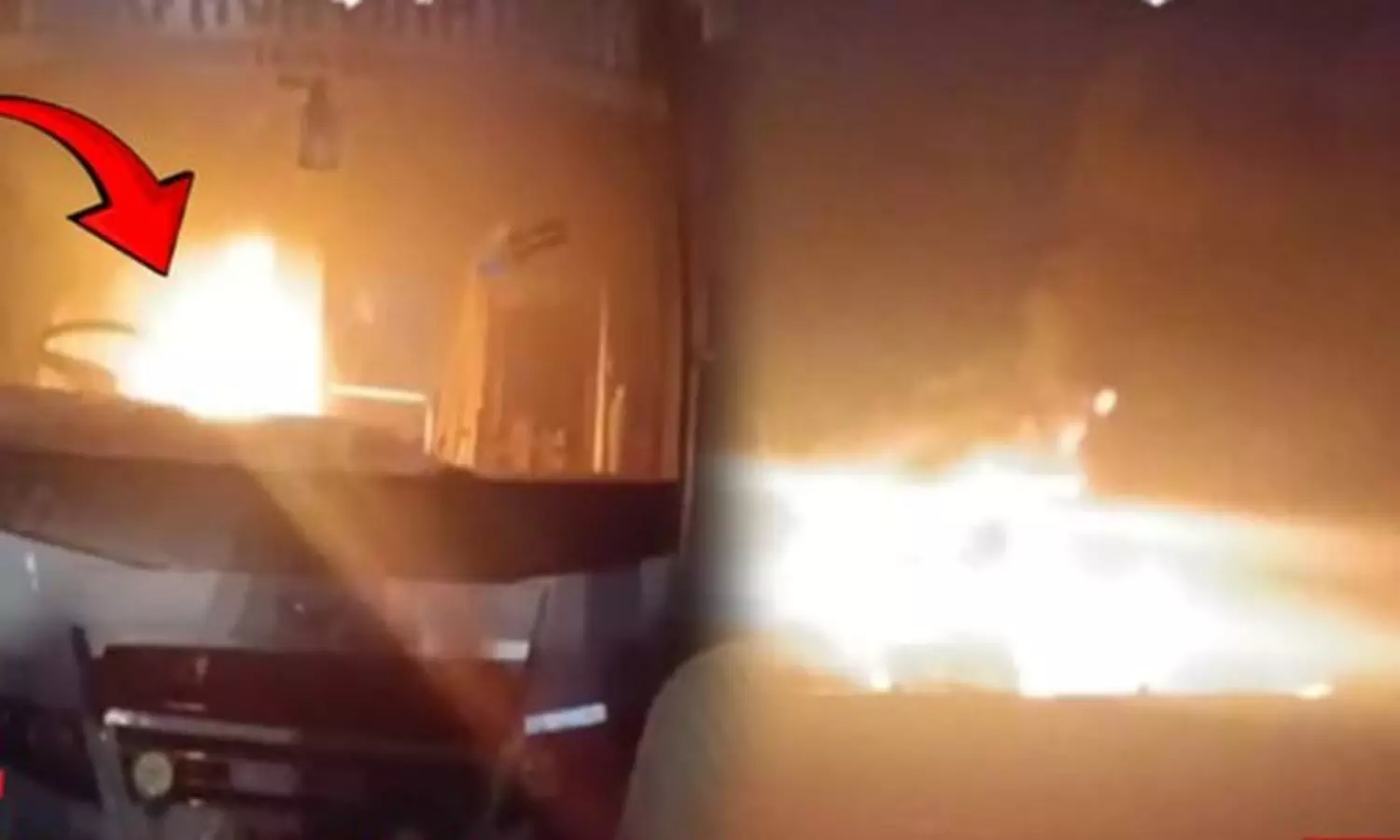 திருப்பூர்: நடு ரோட்டில் தீப்பற்றி எரிந்த ஆம்னி பஸ் - பரபரப்பு சம்பவம்