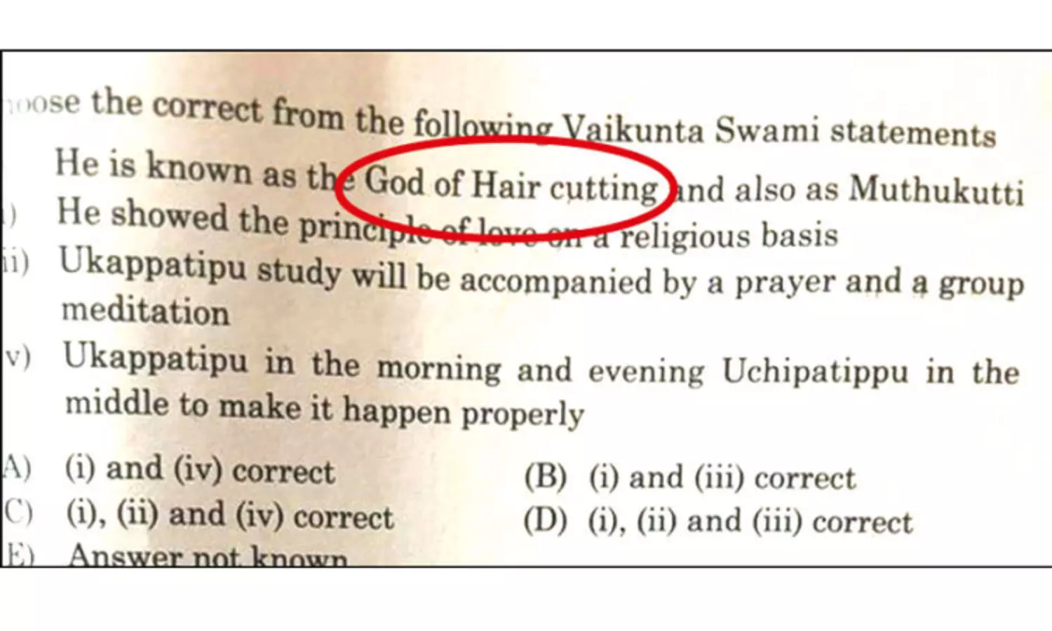 ஒருங்கிணைந்த தொழில்நுட்ப பணிகளுக்கான தாள்-1 தேர்வை தமிழ்நாடு அரசு பணியாளர் தேர்வாணையம் (டி.என்.பி.எஸ்.சி.) நடத்தியது. இந்த தேர்வுக்கான வினாத்தாளில் ‘பின்வரும் வைகுண்ட சுவாமிகளின் கூற்றுகளில் சரியானவற்றை தேர்வு செய்க' என்ற வினாவுக்கு 4 விடைகள் கொடுக்கப்பட்டிருந்தன. அதில் முதல் விடையில், ‘முடிசூடும் பெருமாள்’ என்றும், ‘முத்துக்குட்டி’ என்றும் அழைக்கப்பட்டார் என கூறப்பட்டு இருந்தது.