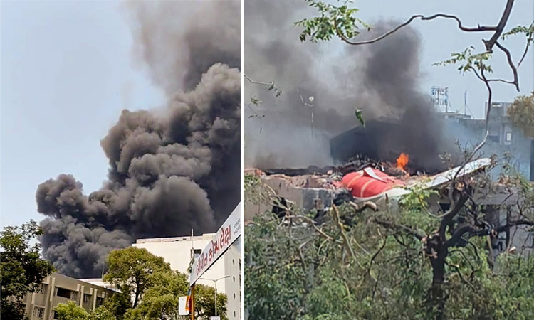 அகமதாபாத்தில் விபத்துக்குள்ளான விமானம் தீப்பற்றி எரியும் காட்சி