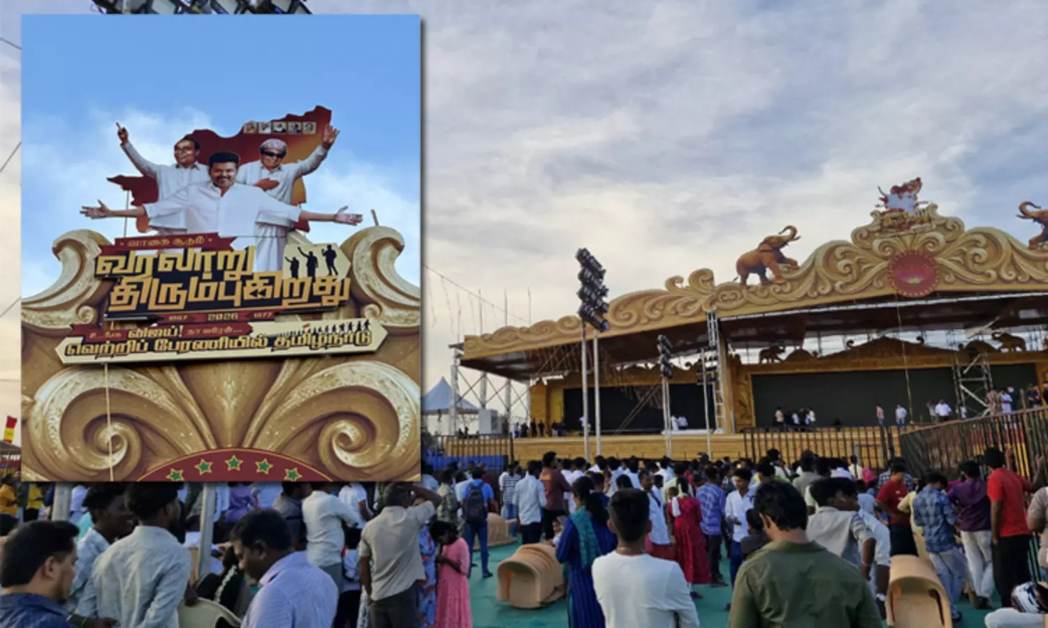 த.வெ.க. மாநாட்டு திடலுக்கு அதன் தலைவர் விஜய் வருகை தந்துள்ளார்.