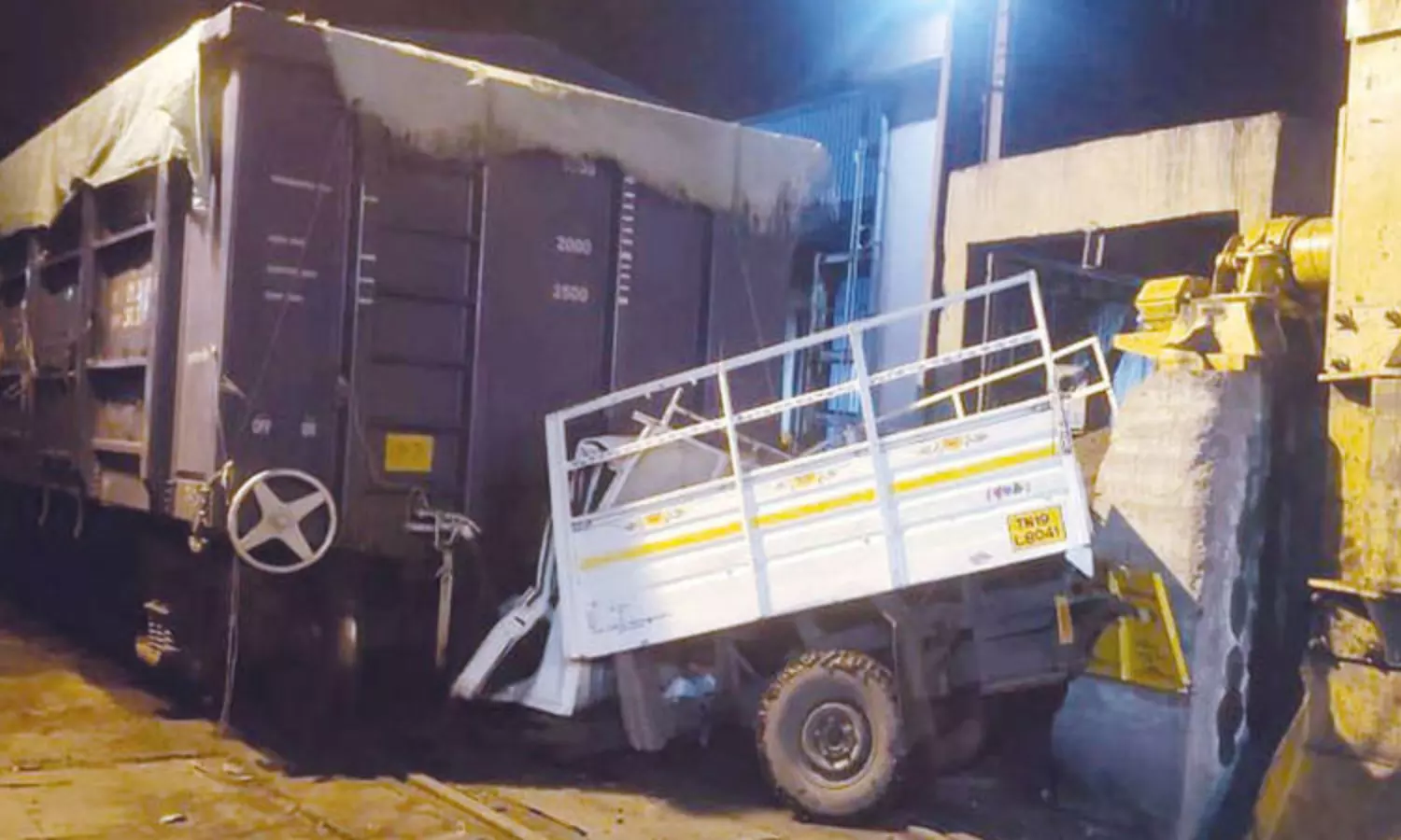 சரக்கு வாகனம் மீது ரெயில் மோதி விபத்து