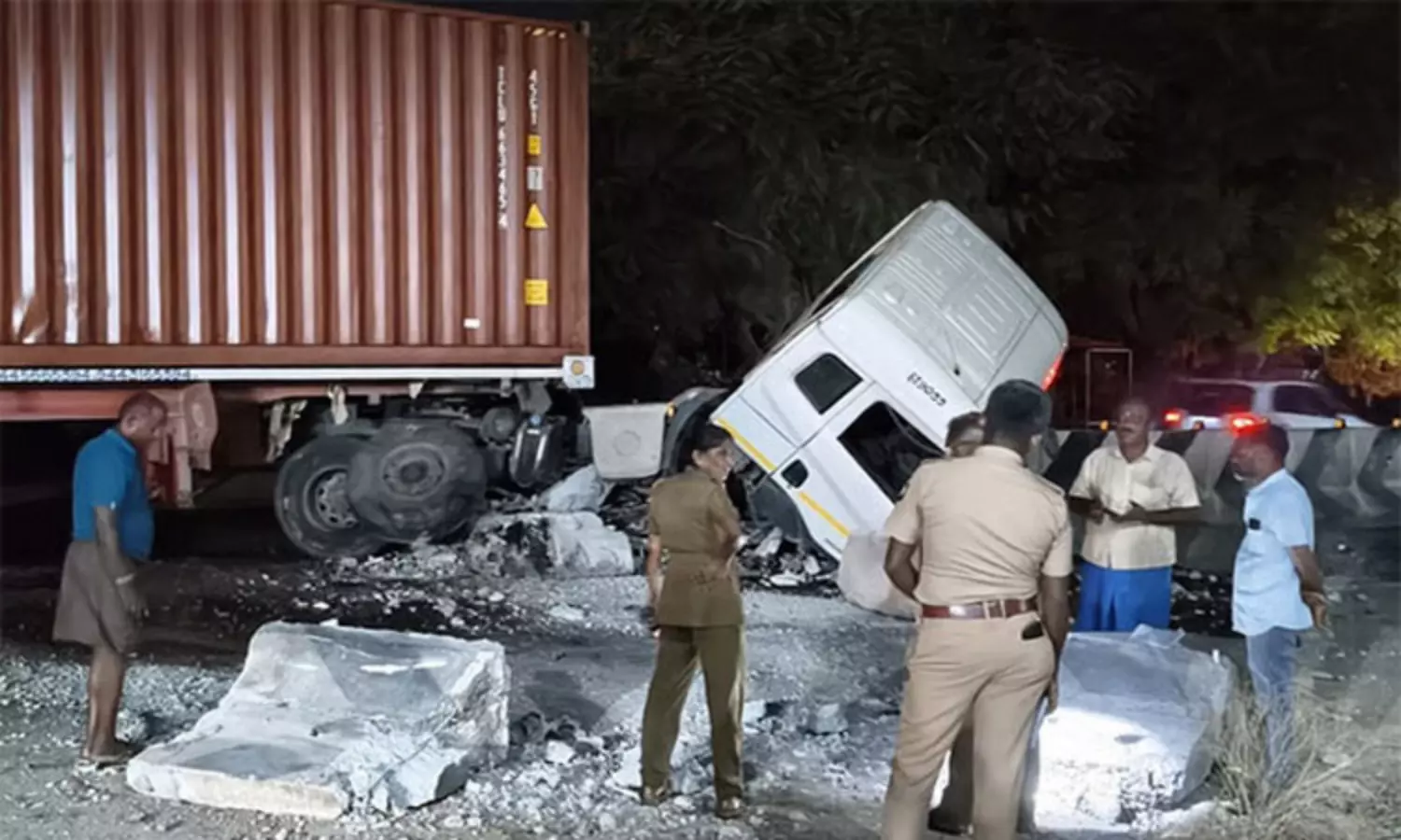 தூத்துக்குடியில் இருந்து சரக்குப் பெட்டக லாரி பழைய பேப்பர்களை ஏற்றிக்கொண்டு சிவகாசிக்குச் சென்று கொண்டிருந்தது. பசுவந்தனை தெற்கு செவல்பட்டியைச் சேர்ந்த அய்யாத்துரை (வயது 41) லாரியை ஓட்டிச் சென்றார். இந்த லாரி கடந்த 15ம் தேதி இரவில் கோவில்பட்டி-வேலாயுதபுரத்தை கடந்து சாத்தூர் பிரதான சாலையில் சென்று கொண்டிருந்தபோது, ஓட்டுநரின் கட்டுப்பாட்டை இழந்து சாலையில் உள்ள சென்டர் மீடியன் தடுப்புச் சுவர் மீது மோதியது.
