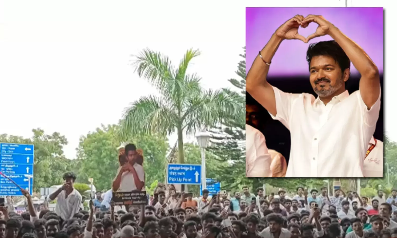 சென்னையிலிருந்து கோவைக்கு ஒரு மணி நேரத்தில் விமானத்தில் வந்தாலும் கோவை விமான நிலையத்திலிருந்து அவர் தங்கி இருந்த ஹோட்டலுக்கும் ஹோட்டலில் இருந்து நிகழ்ச்சி நடைபெற்ற திருமண மண்டபத்திற்கும் விஜய் சென்று வரவே 5 மணி நேரத்திற்கும் மேல் ஆனது. வழியெங்கும் ஆயிரக்கணக்கான தொண்டர்கள் திரண்டு நின்று விஜய்யை பார்த்தனர்.