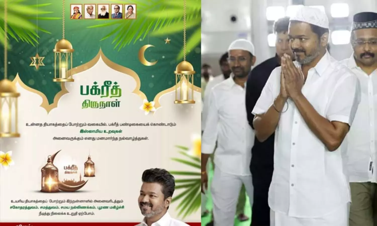 இந்நிலையில், பக்ரீத் பண்டிகையையொட்டி இஸ்லாமியர்களுக்கு தமிழக வெற்றிக்கழக தலைவர் விஜய் வாழ்த்து தெரிவித்துள்ளார். இது தொடர்பாக அவர் எக்ஸ் பக்கத்தில் வெளியிட்ட வாழ்த்து பதிவில்,