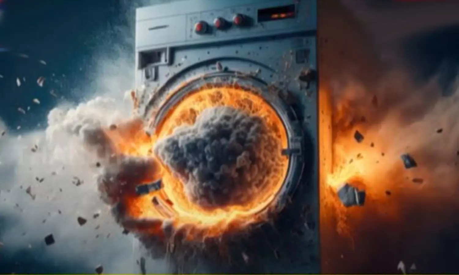 அளவுக்கு அதிகமான துணியை துவைக்க போட்டதால் வாஷிங் மெஷின் வெடித்து தீ விபத்து ஏற்பட்டது.;