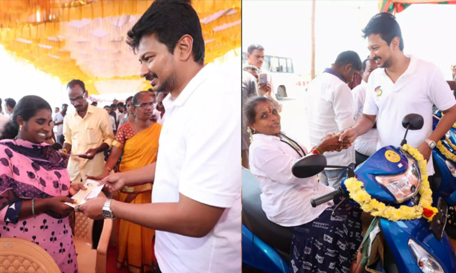 தமிழ்நாடு துணை முதல்-அமைச்சர் உதயநிதி ஸ்டாலின், திருவாரூர் மாவட்டம் திருவாரூர் நகராட்சி எஸ்.எஸ். நகரில் மாற்றுத்திறனாளிகள் நலத்துறையின் சார்பில் இன்று நடைபெற்ற நிகழ்ச்சியில் மாற்றுத்திறனாளியை திருமணம் செய்துகொள்ளும் நல்ல நிலையில் உள்ள நபர்களுக்கு திருமண உதவித்தொகை வழங்கும் திட்டத்தின்கீழ் 5 தம்பதிகளுக்கு தலா 8 கிராம் தங்க நாணயங்களை வழங்கினார். (இத்திட்டத்தின் கீழ் 4 தம்பதிகளுக்கு தலா ரூ.50,000, 1 தம்பதிக்கு ரூ.25,000 என திருமண உதவித்தொகை மின்ணனு பரிவர்த்தனை மூலம் சம்மந்தப்பட்ட பயனாளிகளின் வங்கி கணக்கில் செலுத்தப்பட்டுள்ளது)