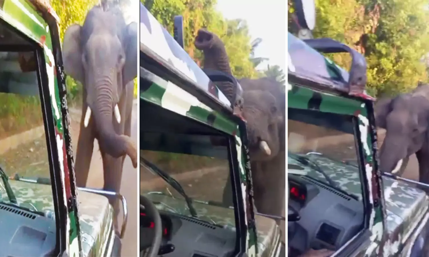 வனத்துறை வாகனத்தை ஆக்ரோஷமாக தாக்கிய காட்டு யானை - வைரல் வீடியோ
