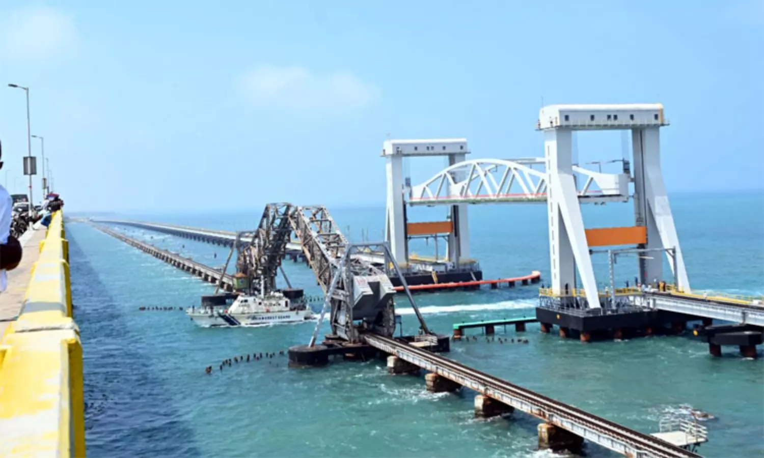 பாம்பன் கடலில் தற்போதுள்ள ரெயில் பாலம் 110 ஆண்டுகளை கடந்த பழமையான பாலம் ஆகிவிட்டதால் அந்த பாலத்தின் அருகிலேயே சுமார் 50 மீட்டர் தூரத்தில் வடக்கு கடல் பகுதியில் ரூ.545 கோடியில் புதிதாக ரெயில் பாலம் கட்டி முடிக்கப்பட்டுள்ளது. இந்த பாலத்தின் மையப்பகுதியில் சுமார் 75 மீட்டர் நீளமும், 650 டன் எடையும் கொண்ட செங்குத்து வடிவிலான தூக்குப்பாலமும் கட்டப்பட்டுள்ளது.