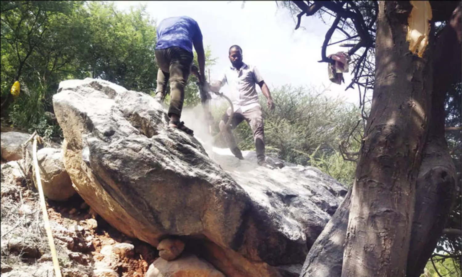அதனைத்தொடர்ந்து மாவட்ட நிர்வாகத்தின் உத்தரவின் பேரில் திருச்சியை சேர்ந்த பாறைகள் உடைக்கும் வல்லுனர் குழுவினர் நேற்று திருவண்ணாமலைக்கு வந்து ஆபத்தான நிலையில் உள்ள சுமார் 30 டன் எடை கொண்ட ராட்சத பாறையில் துளையிட்டு அகற்றும் பணியில் தீவிரமாக ஈடுபட்டு வருகின்றனர்.