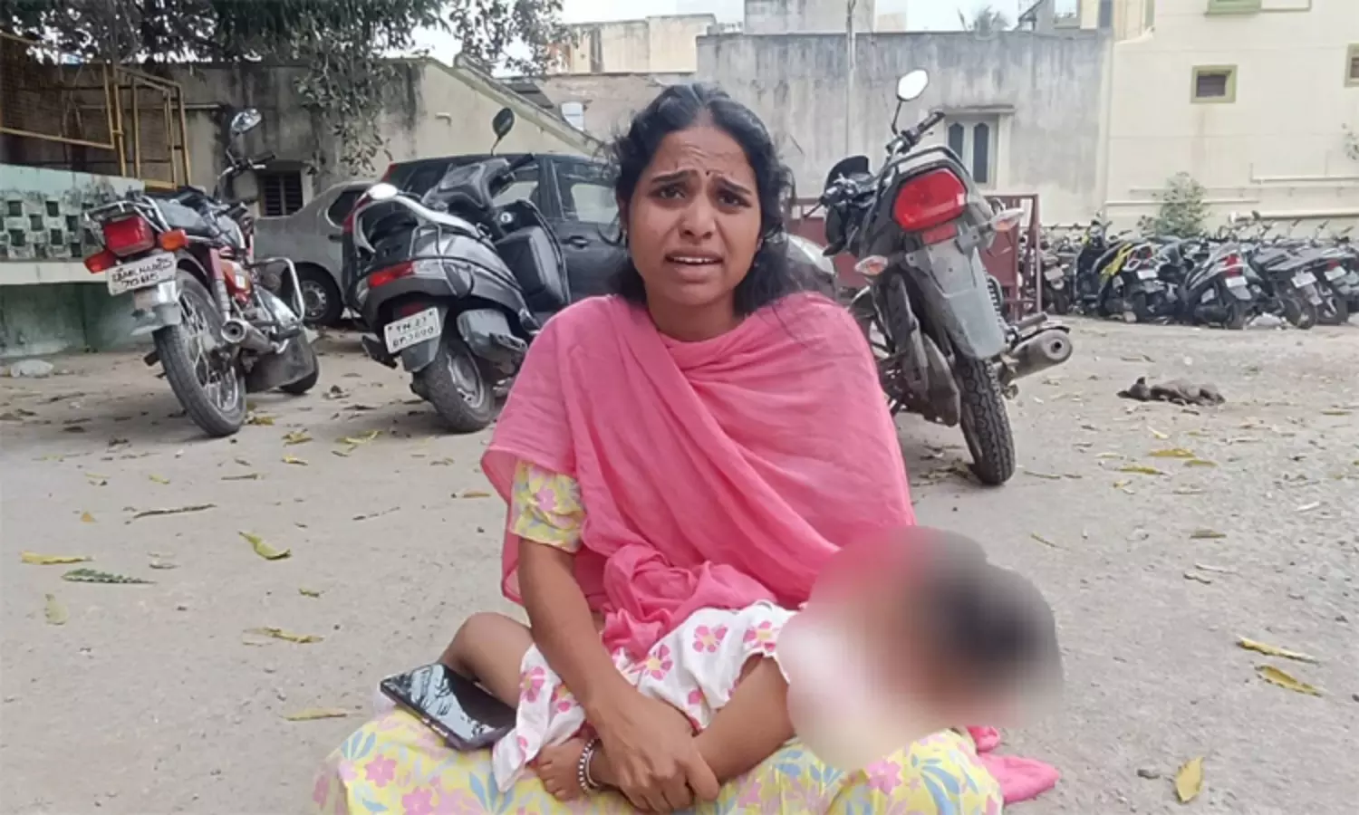 திருப்பத்தூர்: கணவருடன் சேர்த்து வைக்கக்கோரி கைக்குழந்தையுடன் காவல் நிலையம் முன் இளம்பெண் தர்ணா