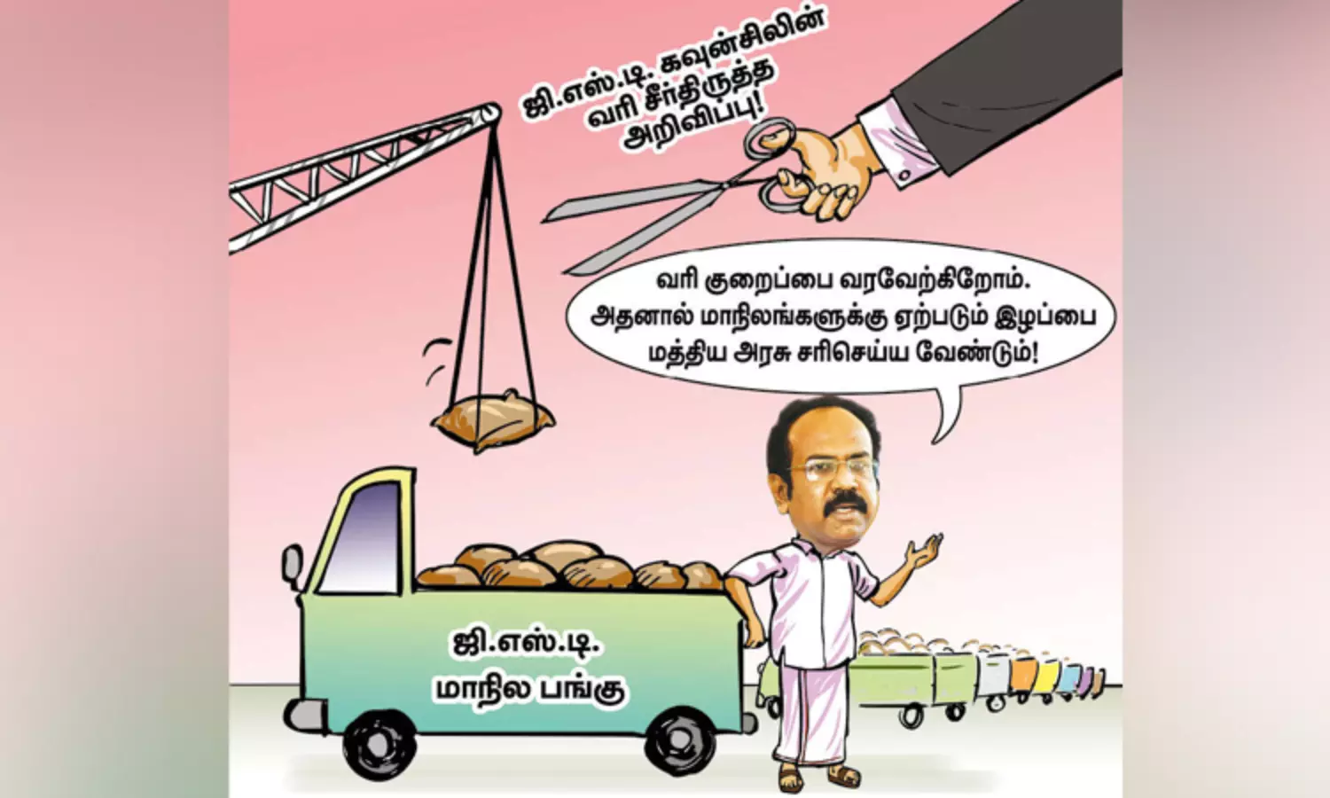 எனவே இந்த இழப்பை மாநில அரசுகளுக்கு முழுமையாக ஈடுகட்டித் தர வேண்டும். சிகரெட், –புகையிலை உள்ளிட்ட ஆடம்பர பொருட்களுக்கு விதிக்க திட்டமிடப்பட்டுள்ள 40 சதவீத வரியை இன்னும் அதிகரிக்க வேண்டும். மாநிலங்களுக்கு ஐந்து ஆண்டுகளுக்கு தொடர்ச்சியாக இழப்பீடு தொகை வழங்க வேண்டும். இதுவே கூட்டாட்சி தத்துவத்துக்கு வலுசேர்ப்பதோடு, மாநிலங்களின் நிதி சுயாட்சியையும் பாதுகாக்கும்” என்று அந்த பரிந்துரையில் கூறப்பட்டுள்ளது. இந்த கூட்டத்தில் தமிழக நிதி அமைச்சர் தங்கம் தென்னரசு உள்ளிட்ட இந்த 8 மந்திரிகளும் தெரிவித்த கருத்துக்கள் நியாயமானவை. எனவே மத்திய அரசு இதை கருத்தில் எடுத்துக்கொண்டு, மக்களுக்கும் பயன் இருக்க வேண்டும், அதே நேரத்தில் மாநிலங்களுக்கும் இழப்பு ஏற்படக்கூடாது என்ற அடிப்படையில் வரி விகிதங்கள் சீரமைப்பு மற்றும் மாநிலங்களுக்கான இழப்பீடு குறித்த நல்ல முடிவுகளை அறிவிக்க வேண்டும்.