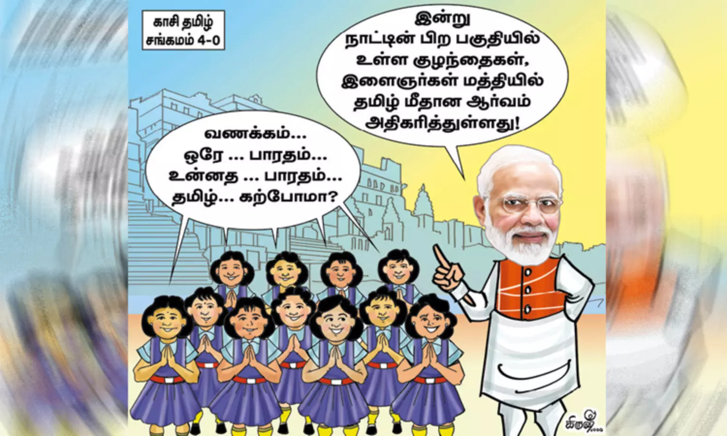 அவர் மேலும் பேசும்போது, இந்த குழந்தைகளின் தாய்மொழி இந்தி, ஆனால் தமிழ்மொழியுடன் கொண்ட ஈடுபாடு அவர்களை தமிழ் கற்க உத்வேகப்படுத்தியுள்ளது. தமிழ்மொழி உலகின் பழமையான மொழி. தமிழ் இலக்கியம் மிகவும் வளமானது. காசி தமிழ் சங்கமத்தில் பங்கெடுத்துக்கொள்ளுங்கள் என்று நான் மனதின் குரலில் வேண்டிக்கொண்டு இருந்தேன்.