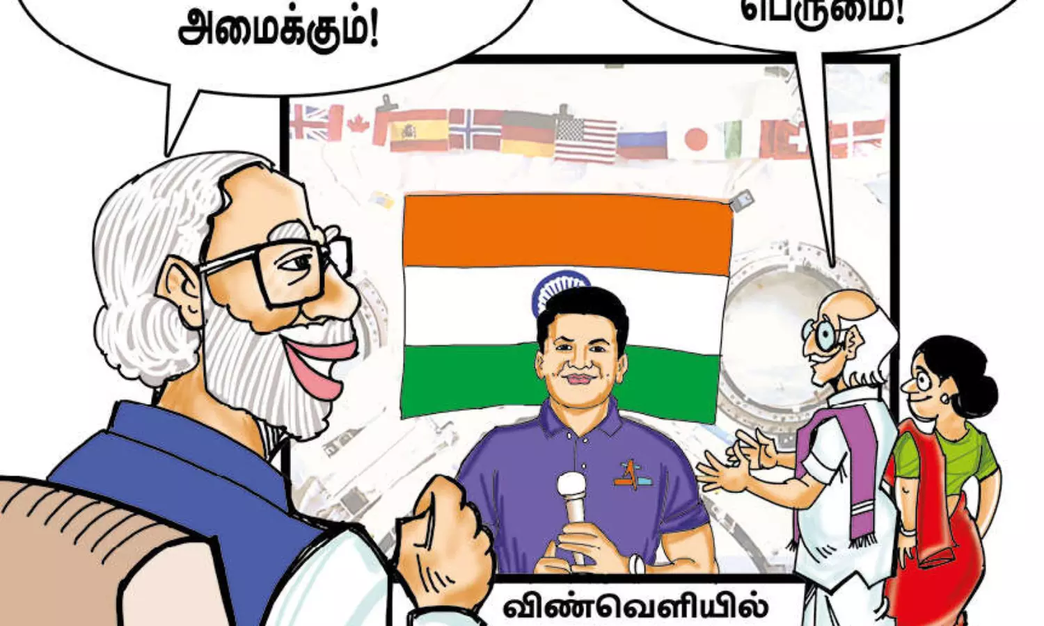 பிரதமர் நரேந்திர மோடி மிகவும் மகிழ்ச்சியுடன் வீடியோ அழைப்பு மூலம், சுபான்ஷு சுக்லாவிடம் பேசும்போது, உங்களது இந்த விண்வெளி பயணம் இந்தியாவுக்கு புதிய அத்தியாயத்தை உருவாக்கியிருக்கிறது என்றார். அதற்கு, சுபான்ஷு சுக்லா, இது என்னுடைய விண்வெளி பயணம் மட்டுமல்ல, இந்தியாவின் பயணம் என்று உணர்ச்சி பொங்க கூறினார். பிரதமரும் அவரிடம் உங்களுடைய பெயரே 'சுபம்' என்று இருக்கிறது. எனவே இந்த விண்வெளி பயணம் மங்களகரமான புதுயுகத்தின் தொடக்கமாக இருக்கிறது என்று சொல்லிவிட்டு, நாட்டு மக்களுக்கும் நல்ல அறிவிப்பை அவருடன் பேசியதன் மூலம் தெரிவித்தார். அதாவது விரைவில் இந்தியா தன் சொந்த விண்வெளி நிலையத்தை நிறுவும். இதுபோல இந்திய விண்வெளி வீரர் நிலவில் கால்பதிப்பதும் நடக்கும். உங்களின் இந்த பயணம் இந்தியாவின் எதிர்கால முயற்சிகளுக்கெல்லாம் தொடக்கமாக இருக்கும் என்றார். பிரதமரின் இந்த அறிவிப்புகளெல்லாம் சாத்தியமாகும்போது கண்ணதாசன் எழுதிய, "நான் பிறந்த நாட்டுக்கு எந்த நாடு பெரியது?" என்று ஒவ்வொரு இந்தியனும் பூரிப்புடன் பாடி கொண்டாடுவார்கள்.