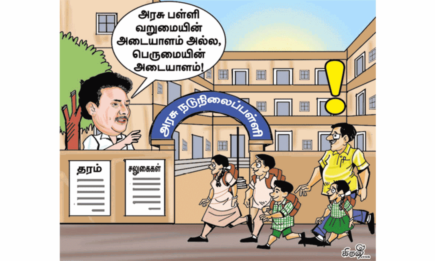 "அரசு பள்ளி என்பது வறுமையின் அடையாளம் அல்ல, பெருமையின் அடையாளம்" என்று அமைச்சர் அன்பில் மகேஷ் பொய்யாமொழி அடிக்கடி கூறுவது தமிழ்நாட்டில் இப்போது நனவாகிவிட்டது. ஏழை-எளிய குடும்பங்களை சேர்ந்த மாணவர்கள் இலவசமாக படிப்பதற்கு வசதியாக அதிக அளவில் அரசு பள்ளிகளை திறக்க பெருந்தலைவர் காமராஜர் நடவடிக்கை எடுத்தார். இதனைத்தொடர்ந்து, கலைஞர் கருணாநிதி, புரட்சித்தலைவர் எம்.ஜி.ஆர்., ஜெயலலிதா, எடப்பாடி பழனிசாமி இப்போது முதல்-அமைச்சர் மு.க.ஸ்டாலின் என எல்லோருமே அரசு பள்ளிகளை தொடங்குவதில் அதிக ஆர்வம் காட்டியதன் விளைவாக, தமிழகத்தில் 37,672 அரசுப்பள்ளிகளும், 8,314 அரசு உதவிபெறும் பள்ளிகளும் என மொத்தம் 45 ஆயிரத்து 986 பள்ளிகள் அரசின் மானிய உதவியோடு இயங்குகின்றன.