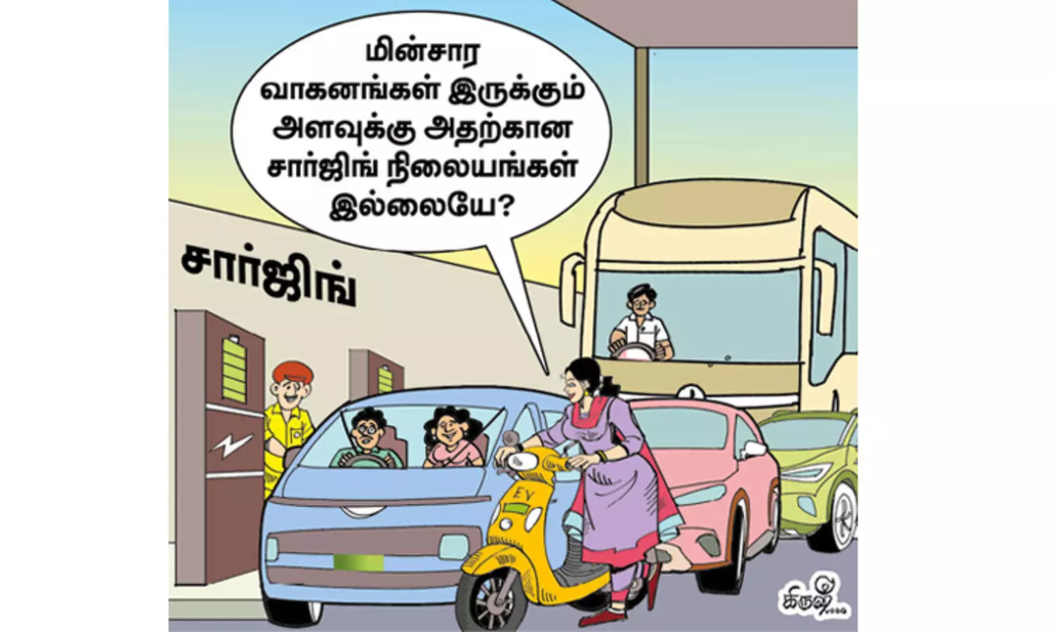 மத்திய அரசின் ‘வாகன்’ தகவலின்படி, இந்தியா முழுவதும் இப்போது மின்சாரத்தில் இயங்கும் 15 லட்சத்து 81 ஆயிரம் கார்களும், 54 லட்சத்து 81 ஆயிரம் இருசக்கர வாகனங்களும் இருக்கின்றன. அதில் தமிழகத்தில் மட்டும் 3 லட்சத்து 30 ஆயிரத்து 716 இருசக்கர வாகனங்களும், ஒரு லட்சத்து 21 ஆயிரத்து 564 கார்களும் இருக்கின்றன. பெட்ரோல்-டீசலைவிட மின்சார வாகனங்களுக்கு ஆகும் செலவு மிகவும் குறைவு என்பதால் புதிதாக கார் வாங்குபவர்கள் விலை சற்று அதிகமாக இருந்தாலும் மின்சார வாகனங்களையே நாடுகிறார்கள். ஆக மின்சார வாகனங்களுக்கு குறைவில்லை. ஆனால் அதில் உள்ள பேட்டரிகளுக்கு சார்ஜ் செய்யும் நிலையங்களின் பற்றாக்குறைதான் பெரும் இடர்பாடாக இருக்கிறது. சீனாவை எடுத்துக்கொண்டால் 3 முதல் 6 மின்சார வாகனங்களுக்கு ஒரு சார்ஜிங் நிலையமும், நெதர்லாந்தில் 2 முதல் 7 வாகனங்களுக்கு ஒரு சார்ஜிங் நிலையமும் இருக்கிறது. ஆனால் இந்தியாவில் சராசரியாக 65 மின்சார வாகனங்களுக்கு ஒரு சார்ஜிங் நிலையம் தான் இருக்கிறது.