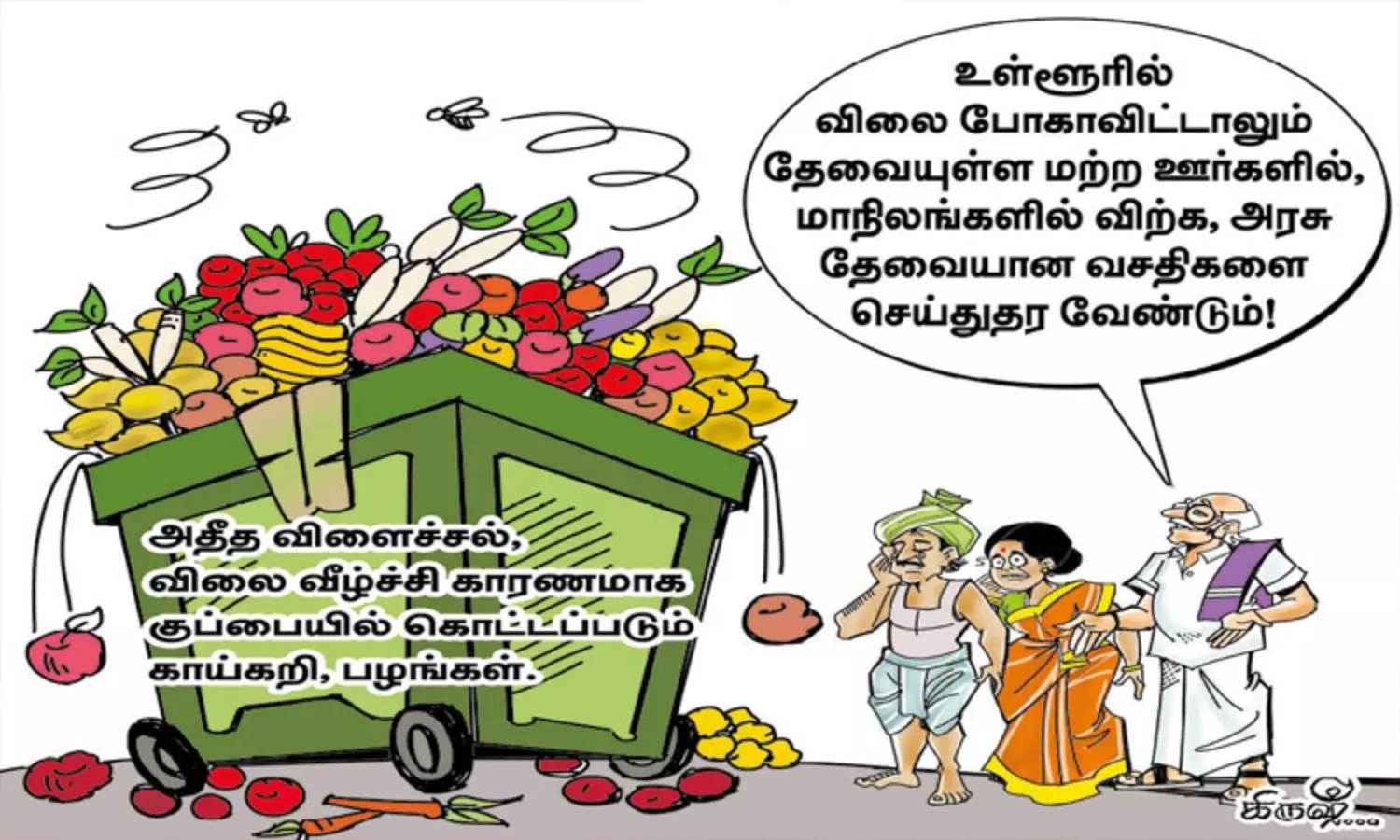 மாம்பழமும், தக்காளியும் பறிப்பதற்கான கூலி, சந்தைக்கு கொண்டுபோக போக்குவரத்து கூலி ஆகியவற்றை சமாளிப்பதற்குக்கூட விற்பனை விலை இல்லை என்பதால் பல இடங்களில் பறிக்காமல் அப்படியே விட்டு அழுகி கீழே விழவைத்து விட்டார்கள். இப்போது முள்ளங்கி கூட கிலோ ரூ.5-க்கு போவதால் விலை கட்டுப்படியாக வில்லை. இதுபோன்ற நிலையை தவிர்க்க உள்ளூரில் விலை போகாவிட்டாலும் தேவையுள்ள மற்ற ஊர்களிலும், மாநிலங்களிலும் விற்க அரசுகள் நடவடிக்கை எடுக்க வேண்டும். ஏற்கனவே அறிவிக்கப்பட்ட காஷ்மீர்-கன்னியாகுமரி வந்தே பாரத் சரக்கு ரெயிலை உடனடியாக விட்டால் காஷ்மீரில் புறப்படும் இந்த ரெயில் அங்கு இருந்து ஆப்பிள் பழங்களை ஏற்றிக்கொண்டு வழிநெடுக இறக்க முடியும். வழியில் உள்ள மாநிலங்களிலும் அங்கு உள்ள பொருட்களை ஏற்றிக்கொண்டு வர முடியும்.