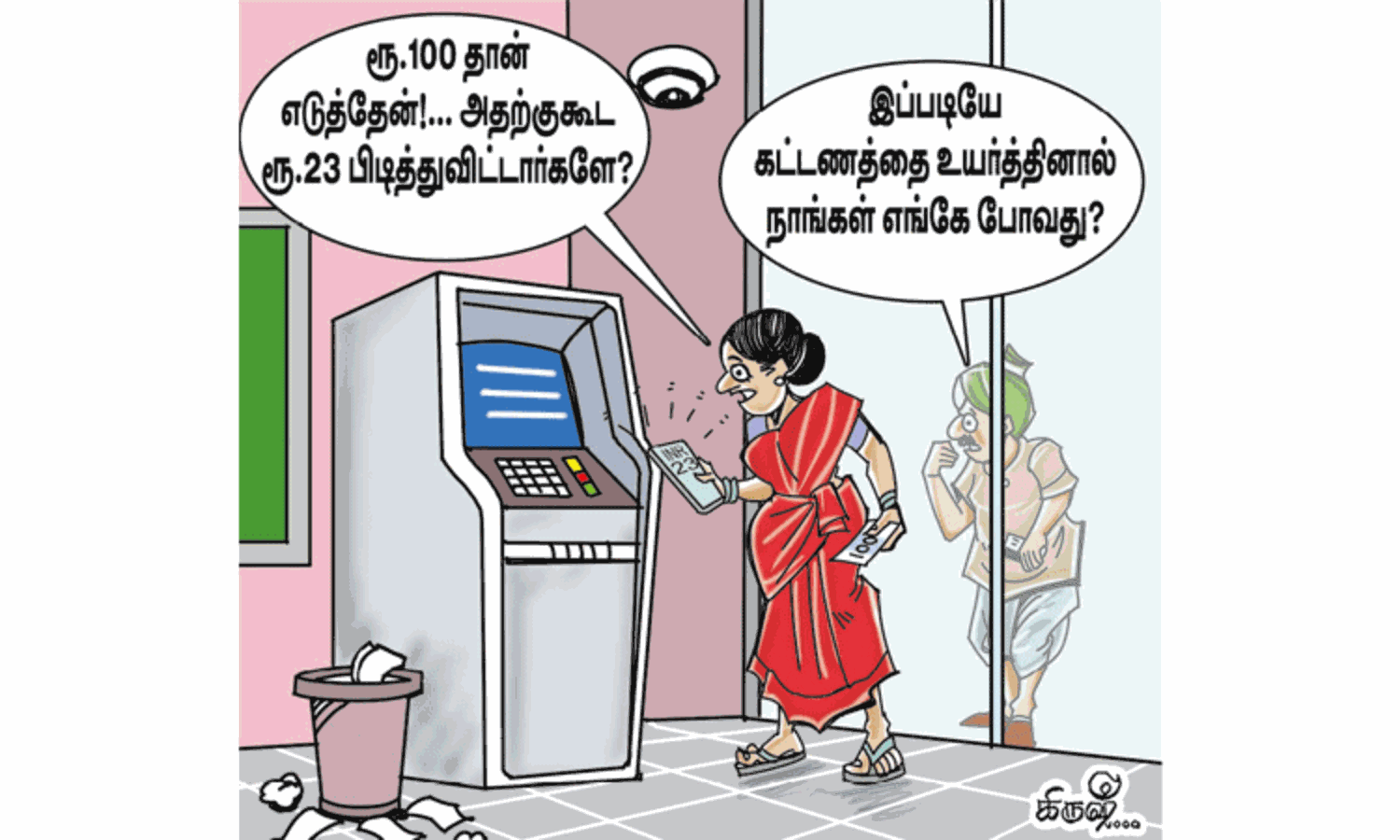 இதுபோல மற்ற வங்கிகளின் ஏ.டி.எம்.களிலும் பெருநகரங்களாக இருந்தால் 3 பரிமாற்றங்களும், மற்ற இடங்களில் 5 முறையும் இலவசமாக பரிமாற்றங்களை மேற்கொள்ள முடியும். அதற்குமேல் ஒவ்வொரு பரிமாற்றத்துக்கும் இப்போது வசூலிக்கப்படும் ரூ.21 கட்டணம், இனி ரூ.23 ஆக உயர்த்தப்படும் என்று அறிவிக்கப்பட்டுள்ளது. இப்போது ஆன்லைன் பரிவர்த்தனைகள் அதிகரித்துவிட்டாலும், படிப்பறிவில்லாத ஏழை-எளிய கிராமப்புற மக்களும் முதியோர், பெண்களும் ஏ.டி.எம்.களைத்தான் அதிகம் பயன்படுத்துகிறார்கள். வீட்டுத்தேவைக்கு குறைந்த அளவு பணம் எடுப்பவர்களும், வங்கிகளில் குறைந்த அளவு இருப்பு வைத்திருப்பவர்களும் பெரும்பாலும் ஏ.டி.எம்.களைத்தான் சார்ந்திருப்பதால், இந்த கட்டண உயர்வை சற்று நிறுத்திவைக்கலாமே என்ற கோரிக்கை இருந்து வருகிறது. அன்றாட தேவைக்காக ரூ.100, ரூ.200 என்று பணம் எடுப்பவர்களிடம் ஒவ்வொரு முறையும் ரூ.23 வசூலிக்கப்பட்டால் அவர்கள் சீக்கிரம் பணம் இல்லாமல் தவிக்கும்நிலை ஏற்பட்டுவிடும். வங்கிகளுக்கு நிறைய லாபம் கிடைத்துவரும் சூழ்நிலையில், இதுபோன்ற சாதாரண மக்களுக்கான சேவைக்கு கூடுதல் கட்டணம் விதிப்பதை தவிர்க்கலாம் என்பது பரவலான வேண்டுகோளாக இருக்கிறது.