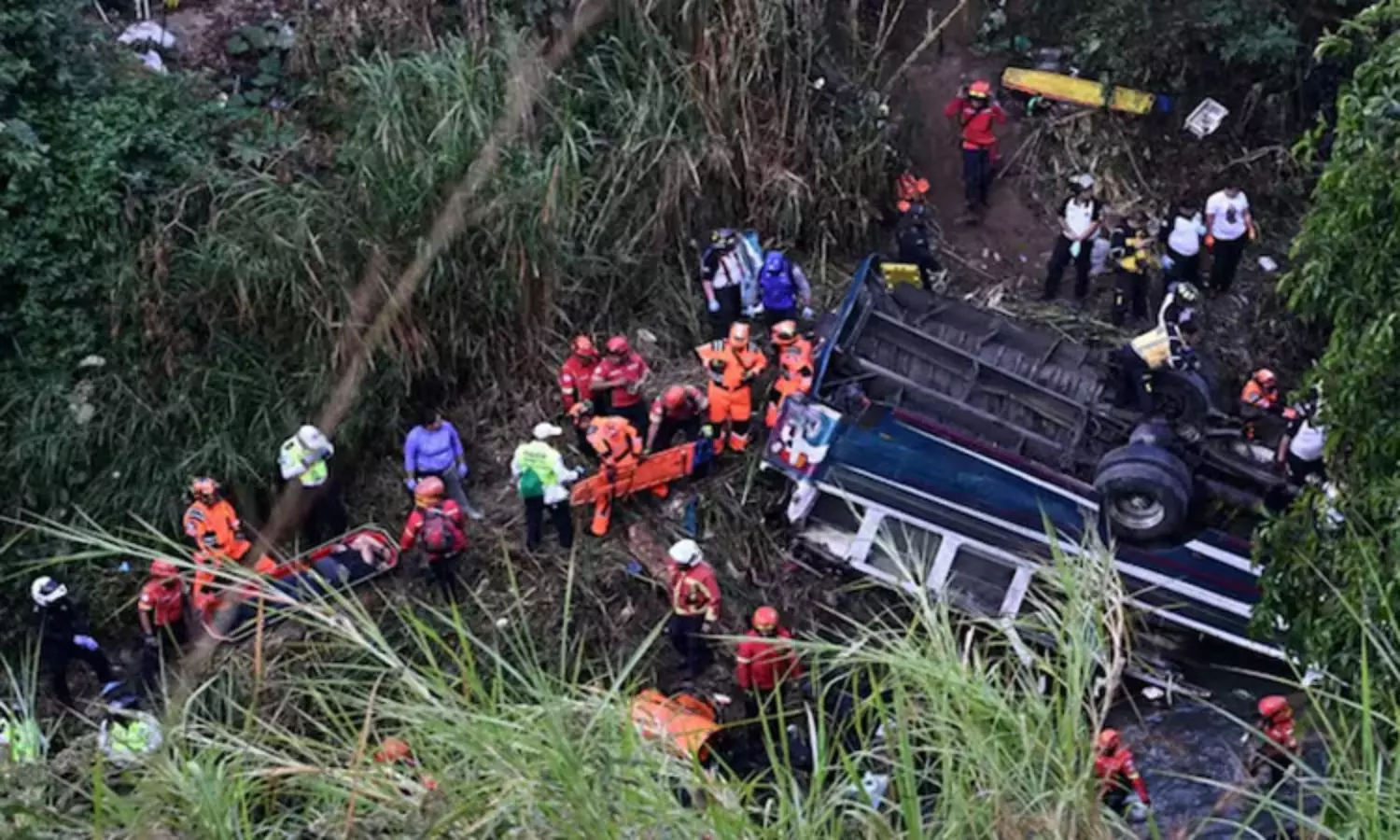 கவுதமலாவில் பள்ளத்தாக்கில் பஸ் கவிழ்ந்து விபத்துக்குள்ளானது. இதில், 51 பேர் பலியாகியுள்ளனர்.;