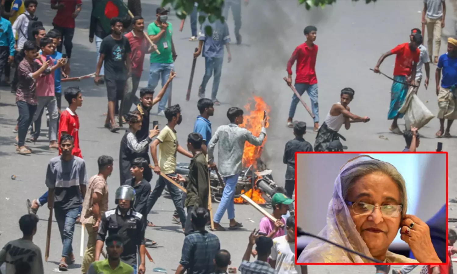 அப்போது, அவாமி லீக் கட்சியினர், வன்முறையில் ஈடுபட்டனர். பல்வேறு வாகனங்களுக்கு தீ வைக்கப்பட்டது. கட்சியினருக்கும் போலீசாருக்கும் இடையே நடந்த மோதலில் 4 பேர் கொல்லப்பட்டனர். 50-க்கும் மேற்பட்டோர் காயமடைந்தனர். கலவரம் பரவியதும், போராட்டத்தில் ஈடுபட்டிருந்த மாணவர் தலைவர்கள் காவல் நிலையங்களுக்குள் தஞ்சம் அடைந்தனர்.