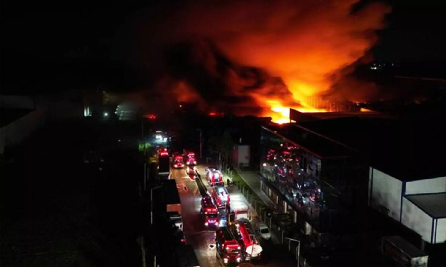 இதனால் ஏற்பட்ட தீ மளமளவென பல்வேறு கட்டிடங்களுக்கும் பரவியது. 6 மணிநேரம் போராடியும் தீயை அணைக்க முடியாமல் தீயணைப்பு வீரர்கள் போராடினர்.