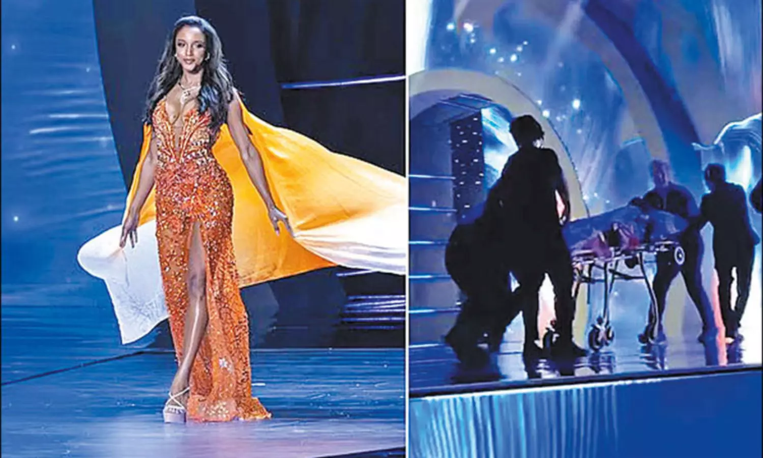 தாய்லாந்து தலைநகர் பாங்காக்கில் நடைபெற்ற 74-வது பிரபஞ்ச அழகி போட்டியில் பங்கேற்ற பெண்கள் பலரும் ஒய்யாரமாக நடந்து சென்றனர். அப்போது ஜமைக்காவை சேர்ந்த கபிரியெல்லே கென்ஹியும் அந்த மேடையில் ஒய்யாரமாக நடந்து சென்றார். ஆனால் எதிர்பாராத விதமாக அவர் கால் தவறி மேடையிலேயே விழுந்தார். இதனையடுத்து அங்கிருந்த நிகழ்ச்சி ஏற்பாட்டாளர்கள் உடனடியாக அவரை தூக்கி விட்டனர். அதிர்ஷ்டவசமாக அவருக்கு எவ்வித காயமும் ஏற்படவில்லை. எனினும் இந்த சம்பவத்தால் அங்கு சிறிதுநேரம் சலசலப்பு ஏற்பட்டது. இதற்கிடையே கபிரியெல்லே தவறி விழும் காட்சிகள் சமூக வலைதளங்களிலும் வைரலாக பரவி வருகின்றன.