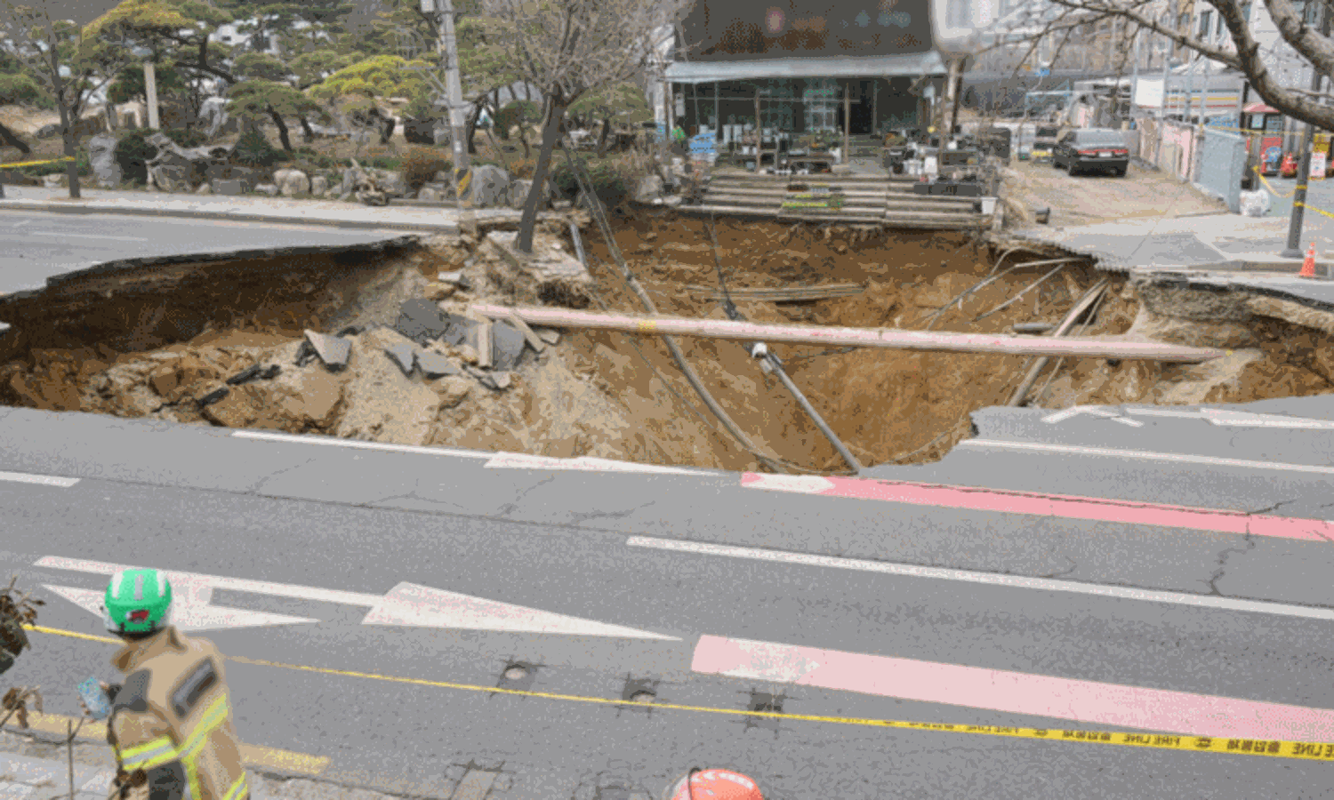 தென் கொரியாவின் சியோலில் நேற்று மியோங்கில்-டோங் பகுதியில் உள்ள ஒரு சந்திப்பில் தோராயமாக 20 மீட்டர் அகலமும் 20 மீட்டர் ஆழமும் கொண்ட பள்ளம் ஒன்று சாலையின் நடுவே திடீரென உருவானது.