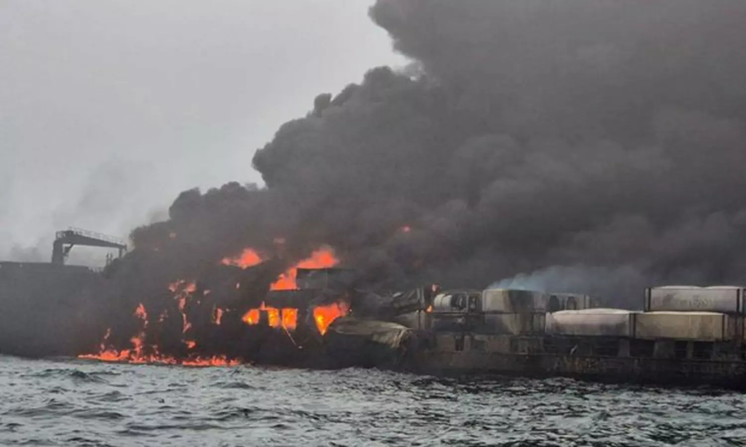 எரிபொருள், வேதிப்பொருள் ஏற்றிச்சென்ற சரக்கு கப்பல்கள் மோதி விபத்து; அதிர்ச்சி சம்பவம்
