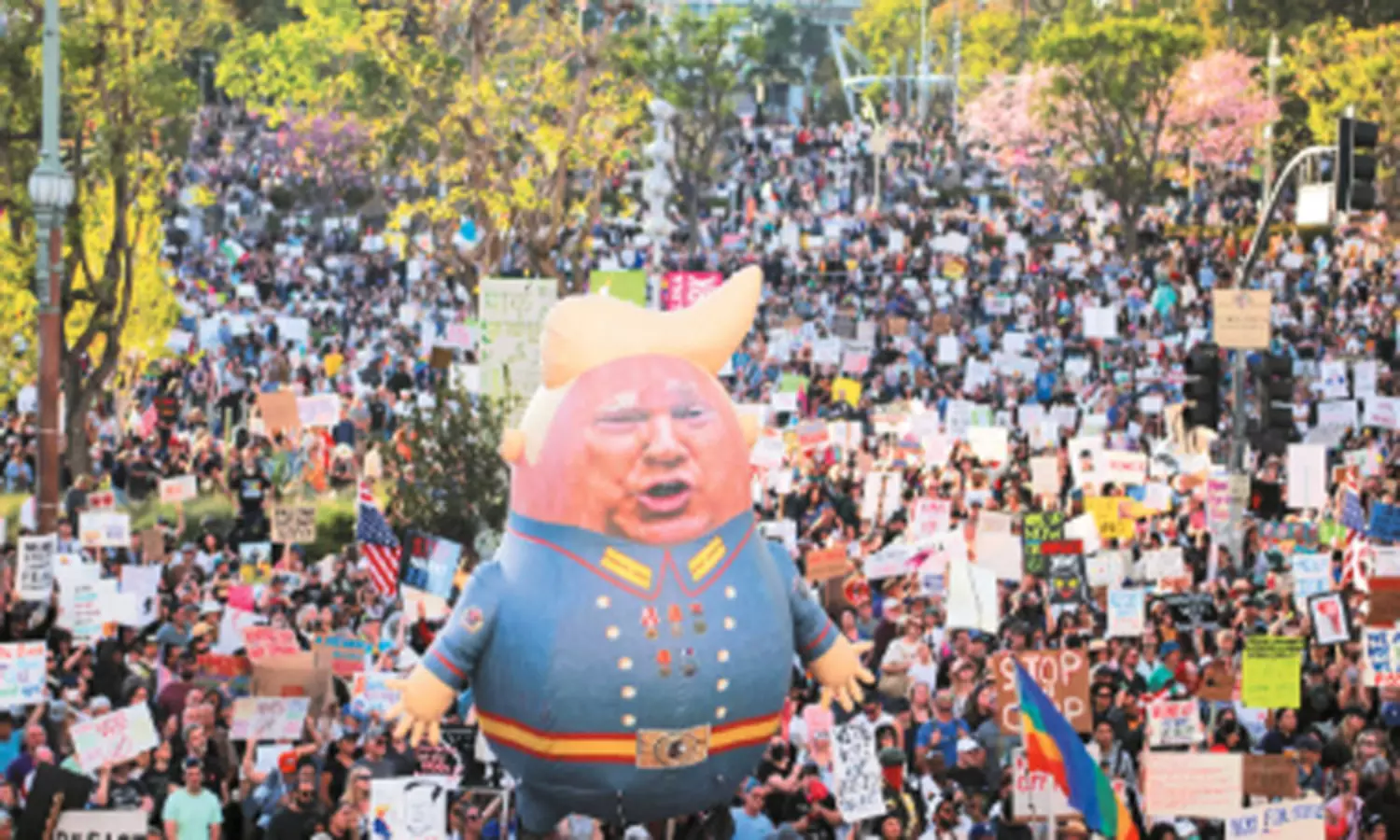 மன்ஹாட்டன் முதல் அலாஸ்காவின் ஆங்கரேஜ் வரை, பல மாகாண தலைநகரங்கள் உள்பட, நாடு முழுவதும் உள்ள நகரங்களில் நேற்று ஆயிரக்கணக்கான மக்கள் போராட்டத்தில் கலந்துகொண்டனர். அவர்கள் டிரம்புக்கு எதிரான கோஷங்களுடன் ஆர்ப்பாட்டம் செய்தனர். அரசு வேலைகளில் ஆட்குறைப்பு, பொருளாதாரம், குடியேற்றம் மற்றும் மனித உரிமைகள் மீதான நடவடிக்கைகளை கண்டித்து முழக்கமிட்டனர். கைகளில், கண்டன பதாகைகளையும் ஏந்தி இருந்தனர்.