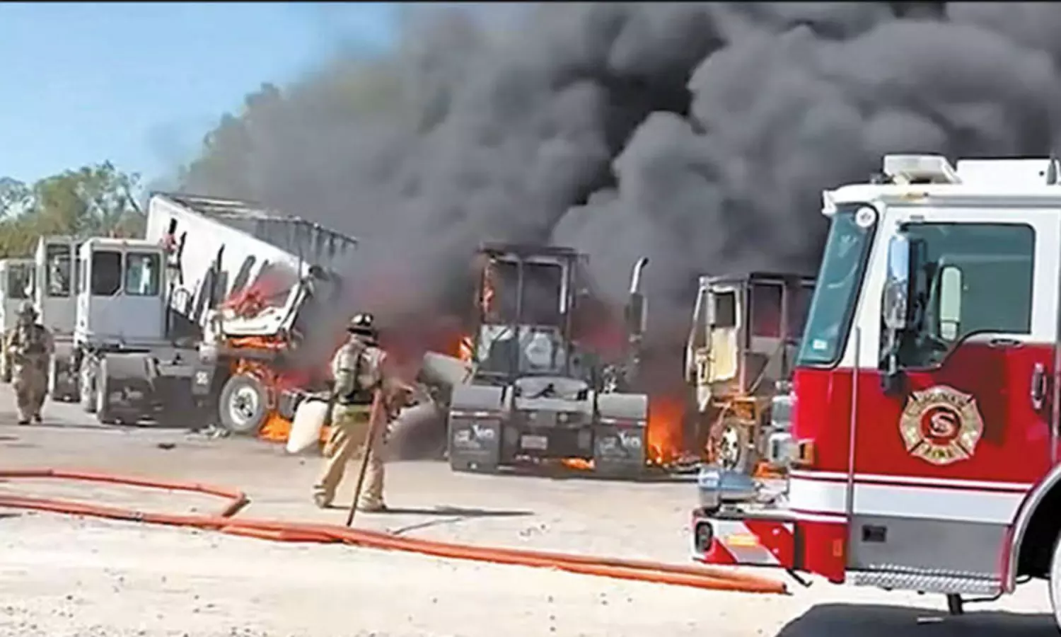 சாலையில் சென்ற லாரி மற்றும் கார்கள் மீது விமானம் விழுந்ததால் பயங்கர தீ விபத்து ஏற்பட்டது.;