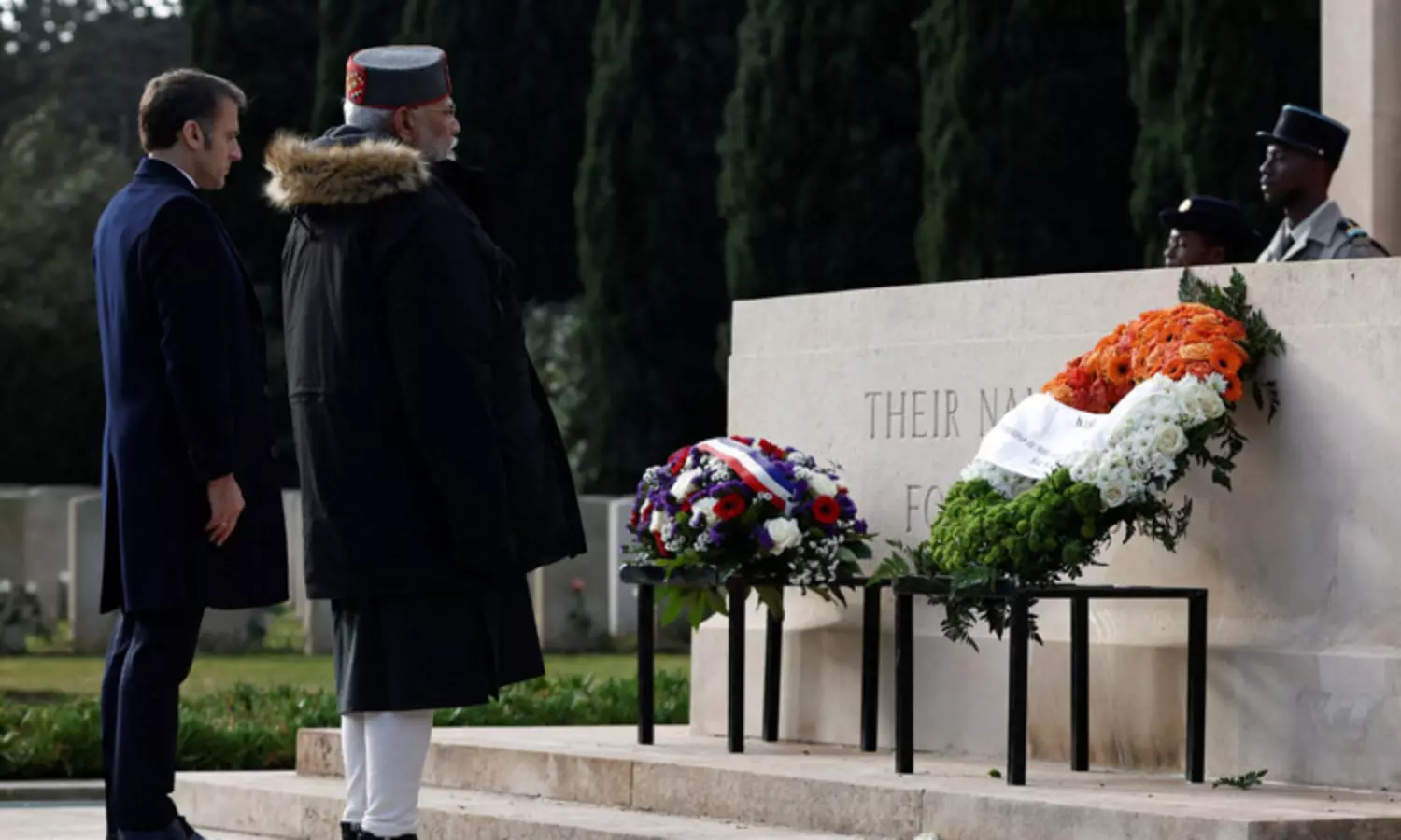 பிரான்ஸ்: உலகப்போரில் உயிரிழந்த இந்திய வீரர்களின் நினைவிடத்தில் பிரதமர் மோடி அஞ்சலி