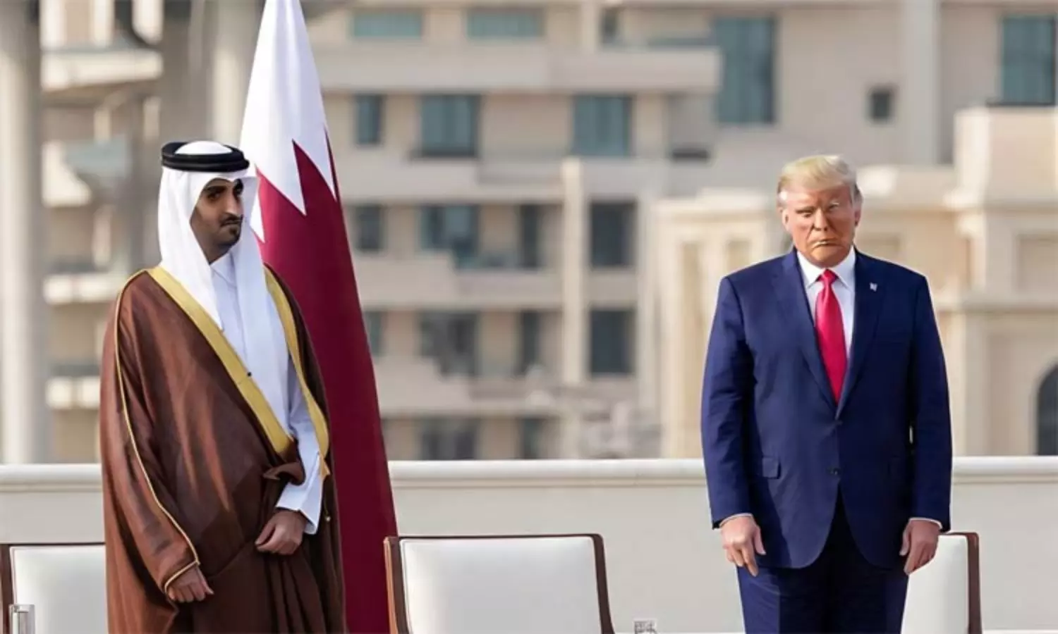 இந்நிலையில், டிரம்ப் இன்று கத்தார் சென்றார். அவர் கத்தார் மன்னர் ஷேக் தமீம் பின் ஹமத் அல்தானியை சந்தித்தார். இந்த சந்திப்பின்போது இரு தலைவர்களும் பல்வேறு விவகாரங்கள் குறித்து ஆலோசனை நடத்தினர்.