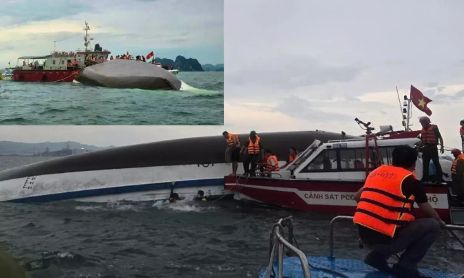 இந்நிலையில், தலைநகர் ஹனோயில் இருந்து 53 சுற்றுலா பயணிகள் இன்று மதியம் படகு மூலம் ஹா லாங் வளைகுடா பகுதிக்கு சுற்றுலா சென்றனர். தென் சீன கடற்பகுதியில் சென்றுகொண்டிருந்தபோது எதிர்பாராத விதமாக சூறைக்காற்றுடன், கனமழை பெய்தது. இதனால், படகு கடலில் கவிழ்ந்து விபத்துக்குள்ளானது. படகில் பயணித்த அனைவரும் கடலில் விழுந்து தத்தளித்தனர்.