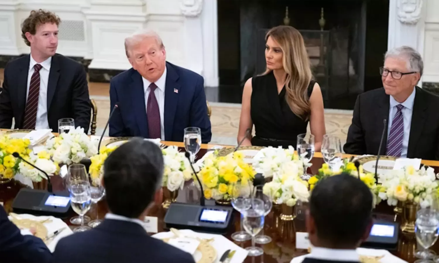 அமெரிக்காவின் தொழில்நுட்ப ஜாம்பவான்களுக்கு ஜனாதிபதி டிரம்ப் இரவு விருந்து வைத்து, பல்வேறு விவகாரங்கள் குறித்து கலந்துரையாடினார். வெள்ளை மாளிகையில் நடைபெற்ற விருந்தில் மைக்ரோசாப்ட் இணை நிறுவனர் பில் கேட்ஸ், ஆப்பிள் தலைமை நிர்வாக அதிகாரி டிம் குக், மெட்டா தலைமை நிர்வாக அதிகாரி மார்க் ஜுக்கர்பெர்க், கூகுள் சிஇஓ சுந்தர் பிச்சை உள்ளிட்டோர் கலந்து கொண்டனர். இந்த விருந்து நிகழ்ச்சியில் டெஸ்லா சி.இ.ஓ. எலான் மஸ்க் இதில் பங்கேற்கவில்லை. அவருக்கு அழைப்பே விடுக்கப்படவில்லை என்றும் தகவல் வெளியாகி உள்ளது.