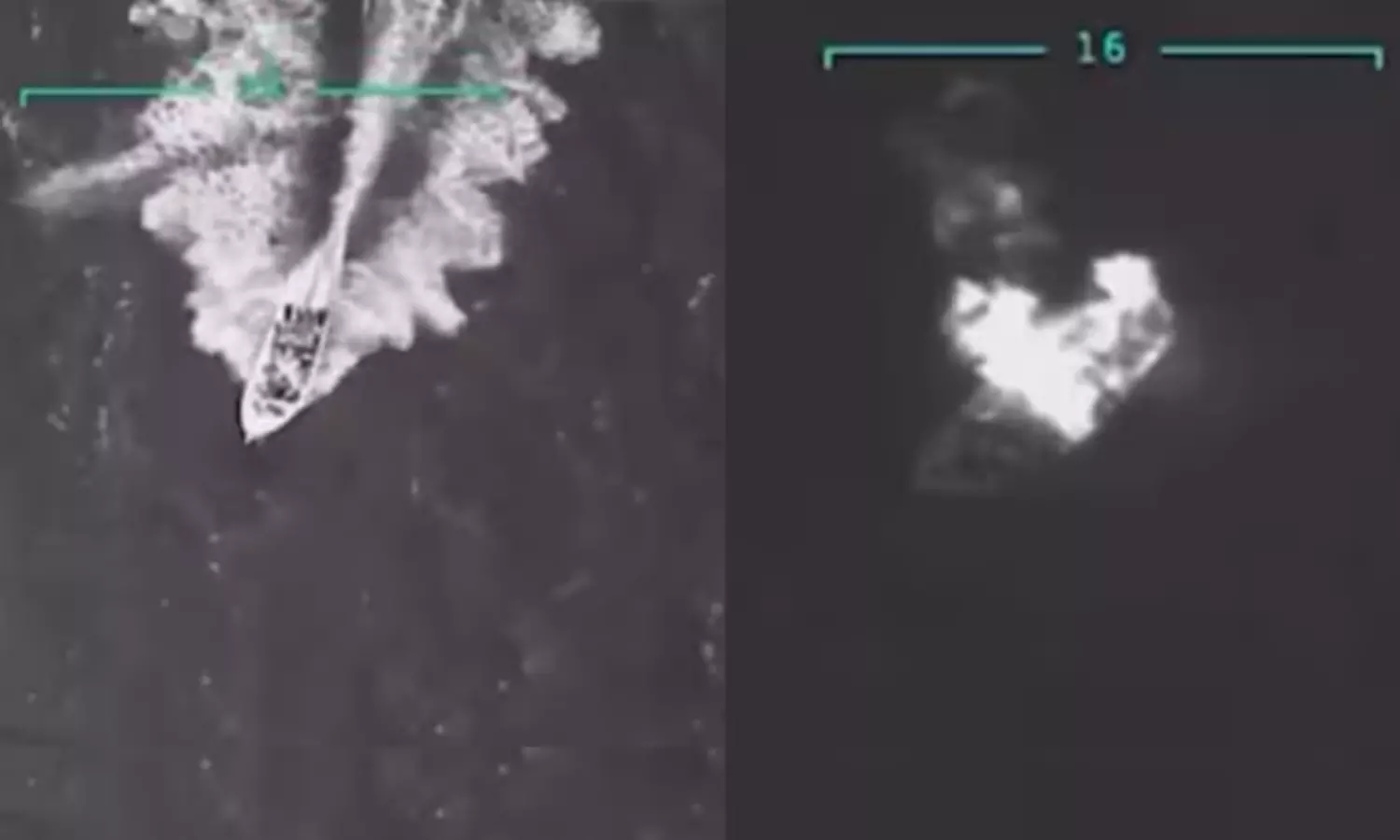 அமெரிக்க ராணுவ தலைமையகமான பென்டகனுக்கு இதுகுறித்து தகவல் தெரிவிக்கப்பட்டது. உடனடியாக அதனை சுட்டு வீழ்த்த உத்தரவு பிறப்பிக்கப்பட்டது. அட்லாண்டிக் தீவுக்கடலில் தயாராக நின்ற அந்த போர்க்கப்பல் வெனிசுலா கப்பல் மீது ஏவுகணை வீசி தாக்குதல் நடத்தியது. இதில் அந்த கப்பல் நடுகடலில் வெடித்து சிதறி மூழ்கியது. இந்த தாக்குதலில் போதைப்பொருள் கடத்தல் கும்பலை சேர்ந்த 11 பேர் உயிரிழந்தனர்.