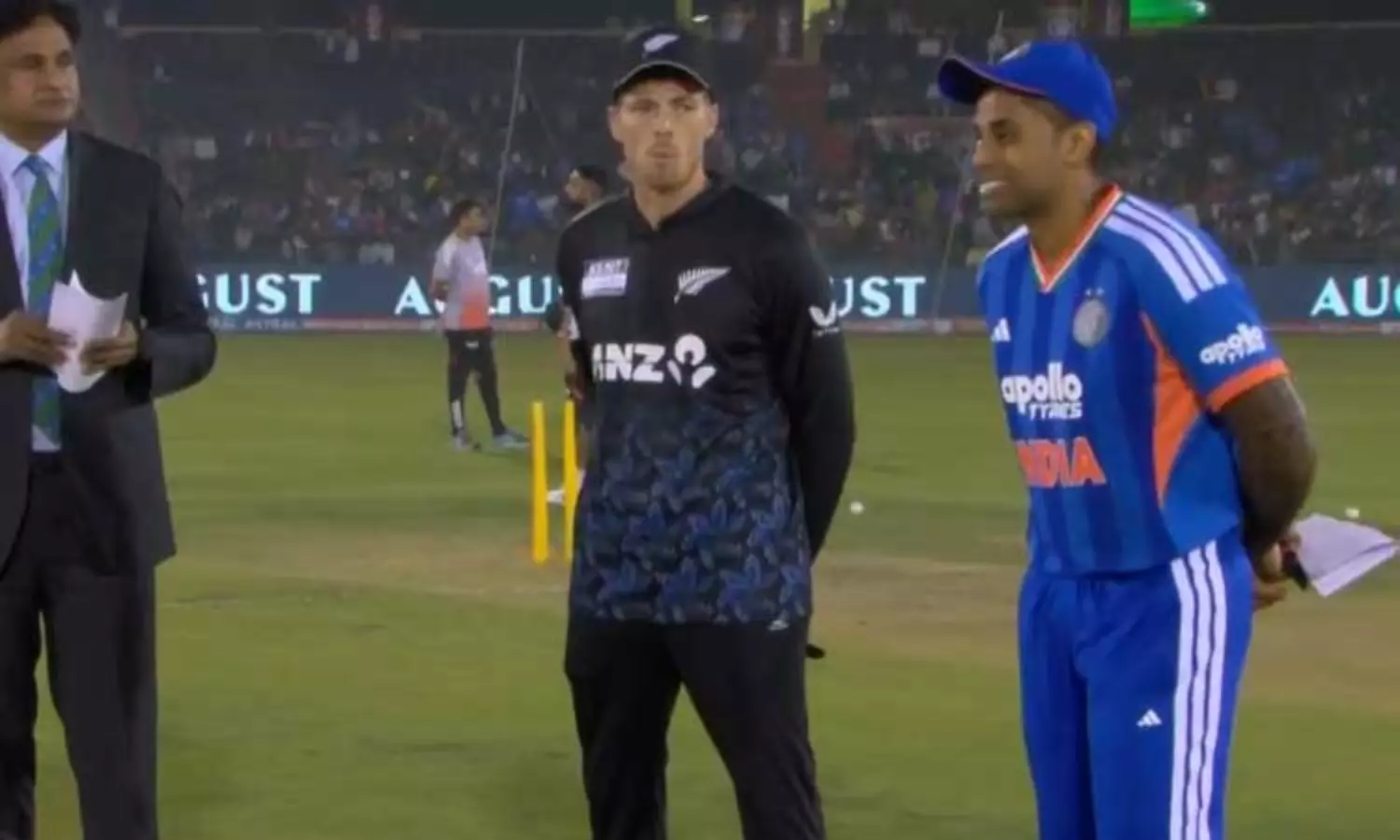 இந்த போட்டிக்கான டாஸ் போடப்பட்டது.அதில் டாஸ் வென்ற இந்திய அணியின் கேப்டன் சூர்யகுமார் யாதவ் பந்துவீச்சை தேர்வு செய்தார். அதன்படி நியூசிலாந்து அணி முதலில் பேட்டிங் செய்கிறது.